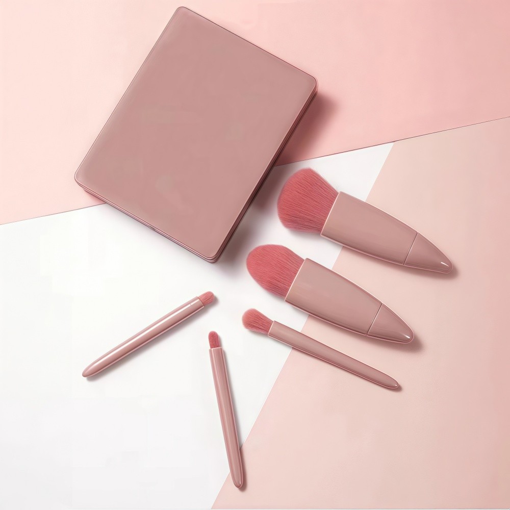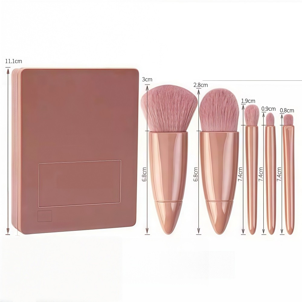 Mini Espelho De Maquiagem Portátil Com 5 Pcs Pincéis De Maquiagem Lupa Mão Segurar Bolso Dobrável Maquiagem Bel