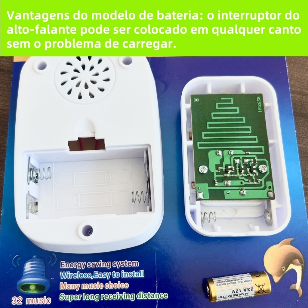 Campainha Externa Sem Fio Com Alcance De Ate 100 M Branca com Dourado, Preto e Branca com Azul