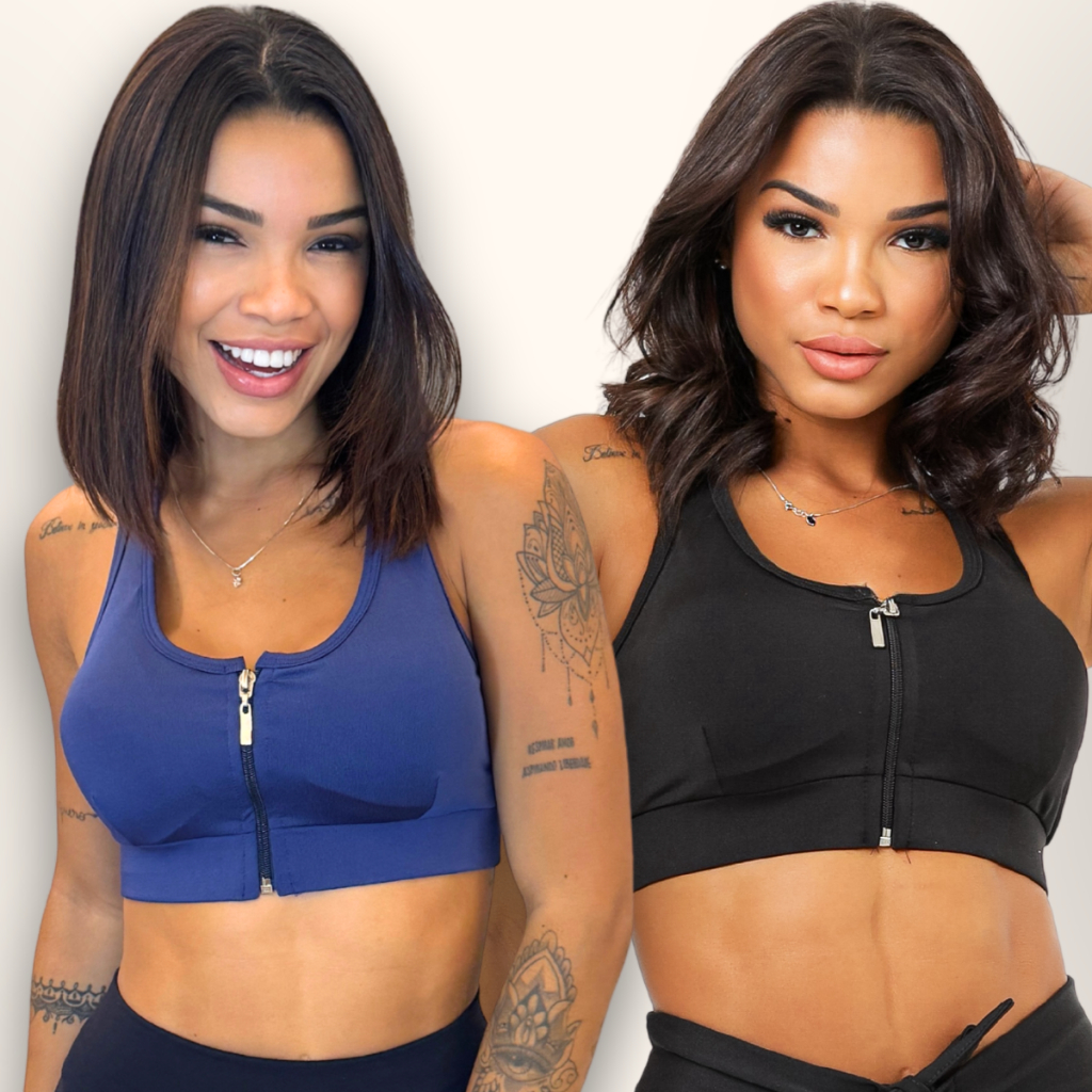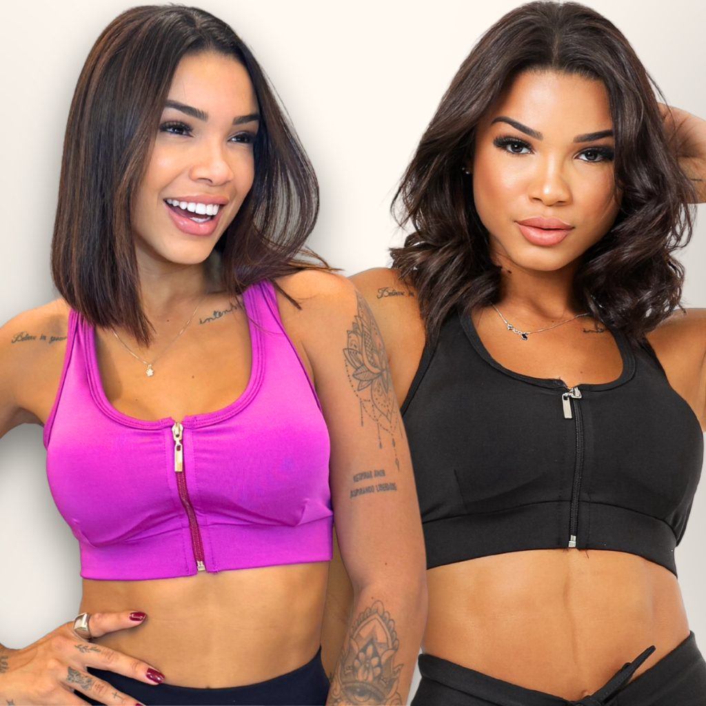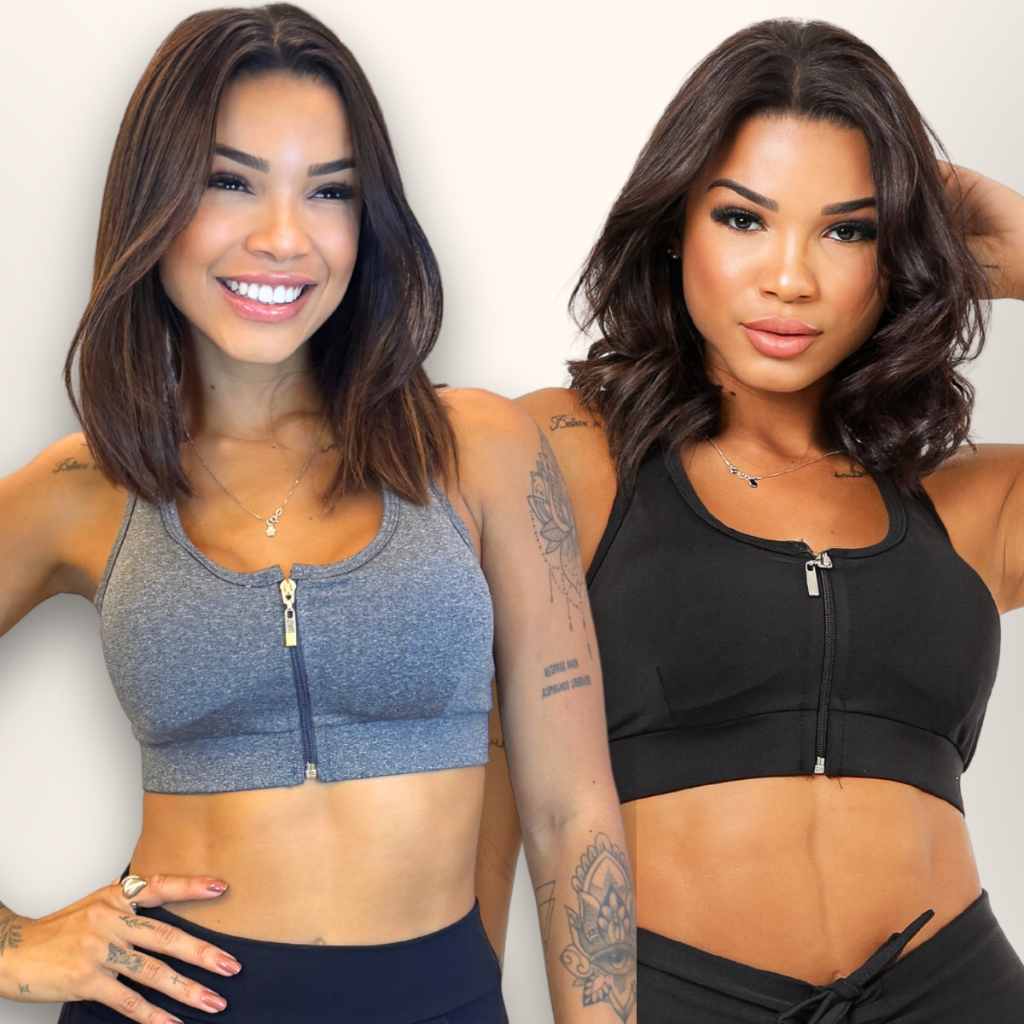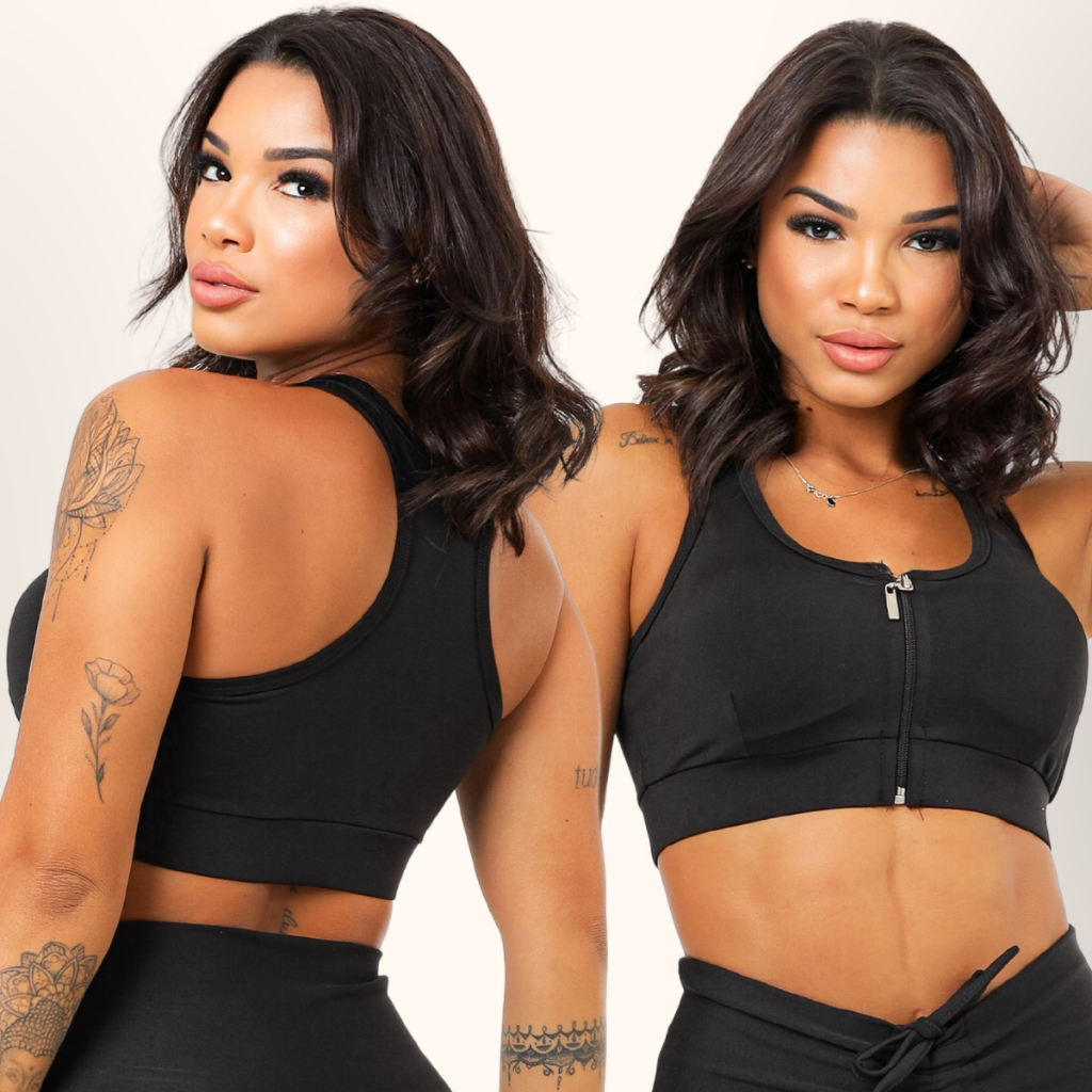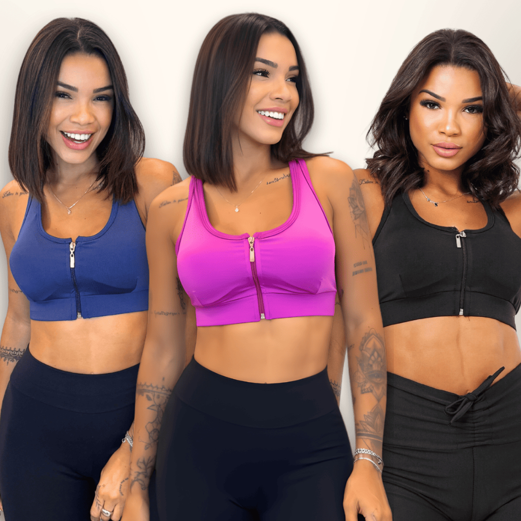 Kit Top Academia Com Zíper E Bojo Removível Suplex + 5 Cores P ao GG