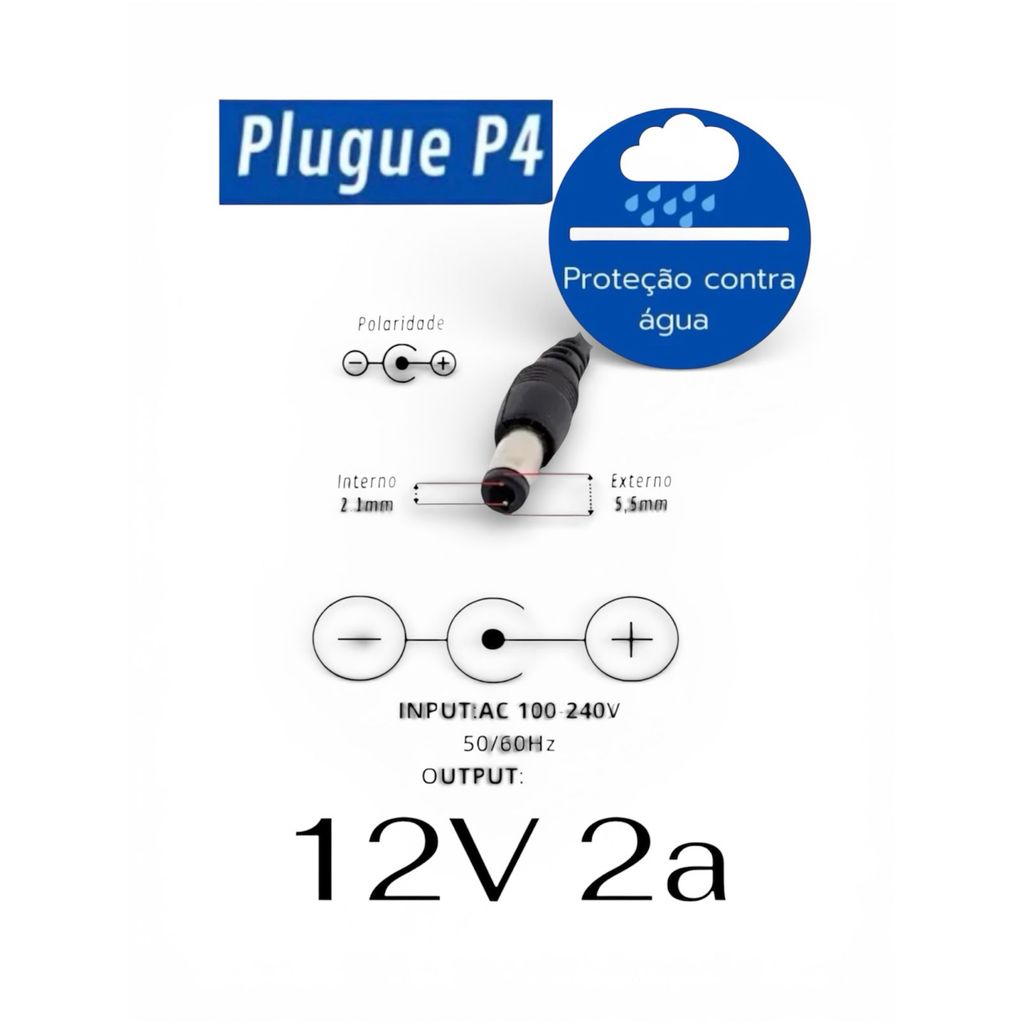 Fonte Branca Para Camera De Segurança 12v 2a Reposiçao Varios Modelos varios modelos IT-BLUE JORTAN LOF LEBOSS IPEGA