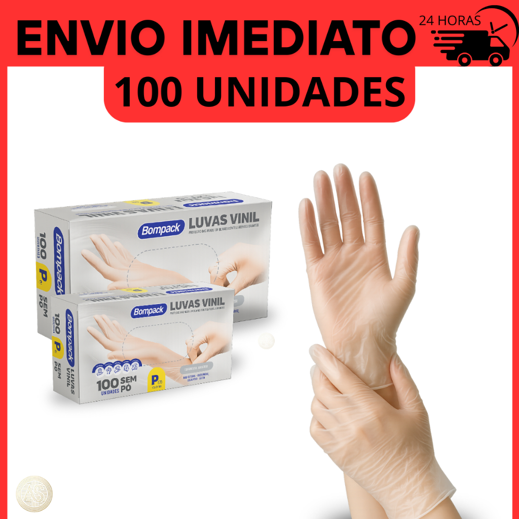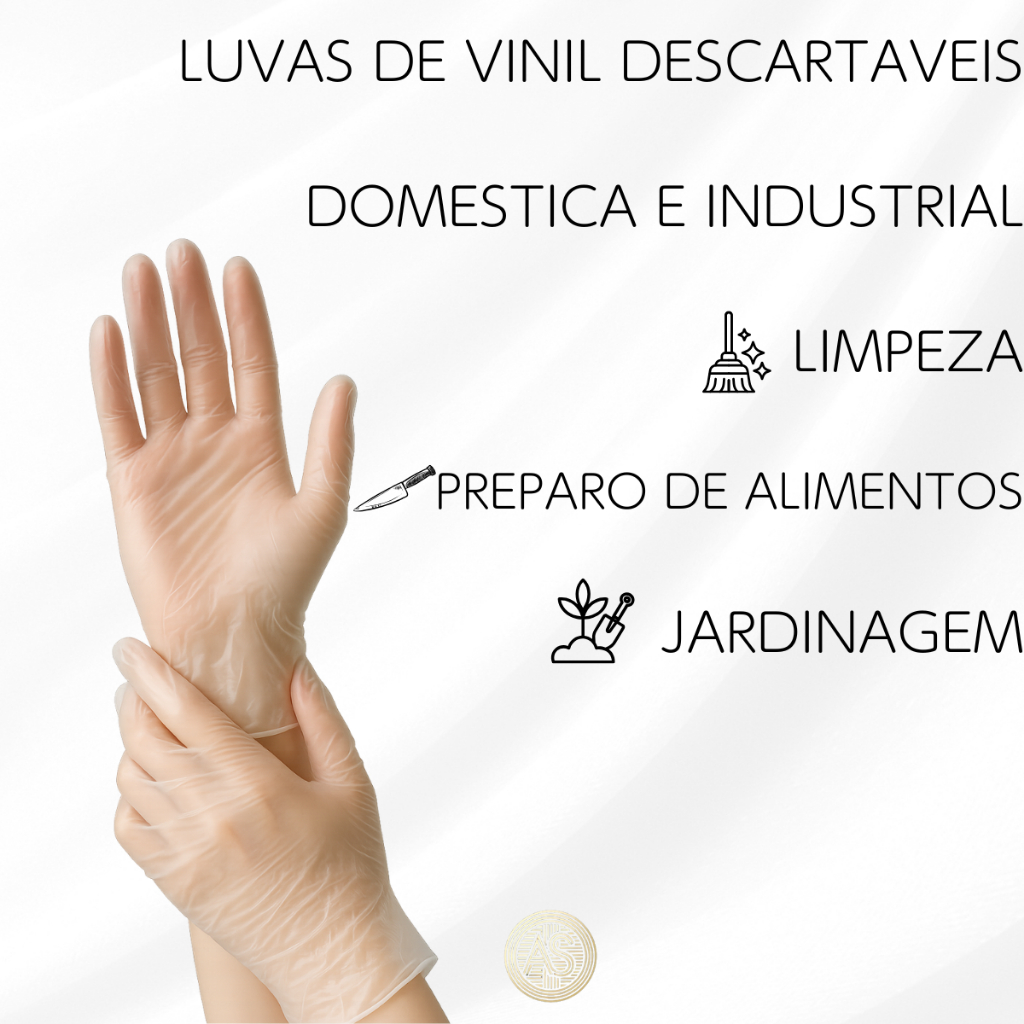 Luva Vinil Transparente Descartável Sem Pó 100 Unidades Resistente Ambidestro Industrial e Domestico