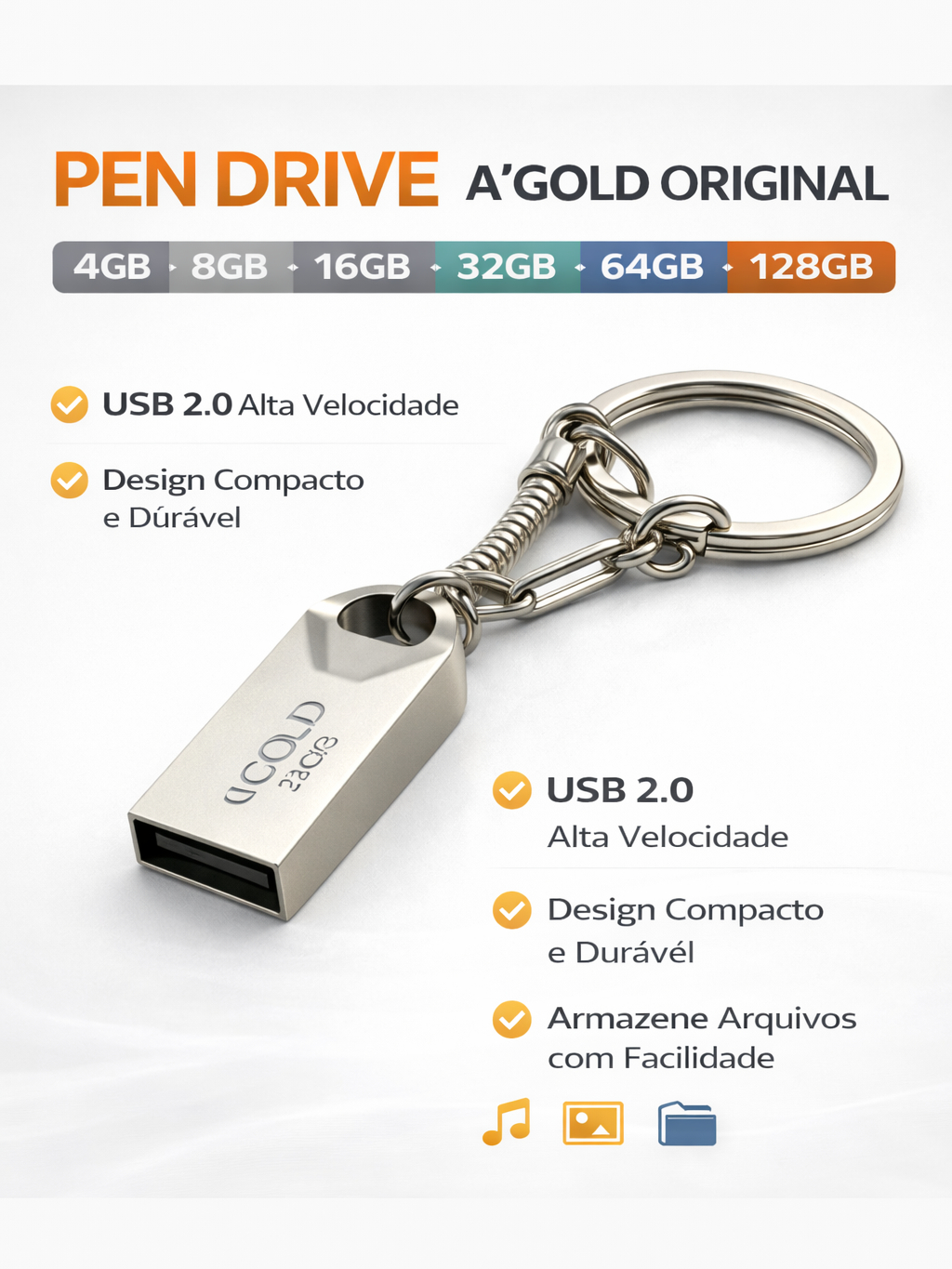 Mini Pendrive Eletro Original – Chaveiro Metálico USB 2.0 (4GB a 128GB) 🔑💾