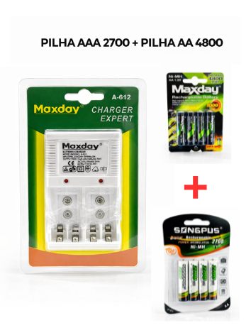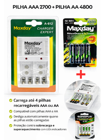 Kit Carregador de Pilhas AA e AAA Allight Charger Expert A-612D Bivolt com Recarga Rápida e Segura