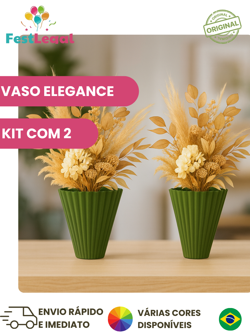 KIT COM 2 VASO GRANDE PARA FESTA, ANIVERSÁRIO E DECORAÇÃO - VARIAS CORES