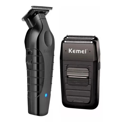 Kit 2 Máquinas de Acabamento Profissional Barbearia Kemei 2299-1102 Recarregável