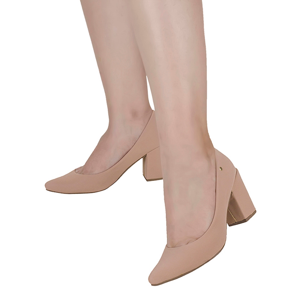 Scarpin Sapato Feminino Fechado Bico Fino Salto Quadrado Grosso Medio 9484