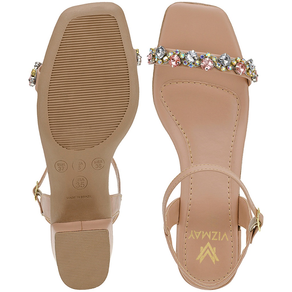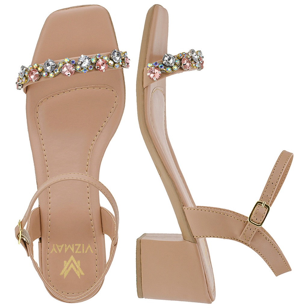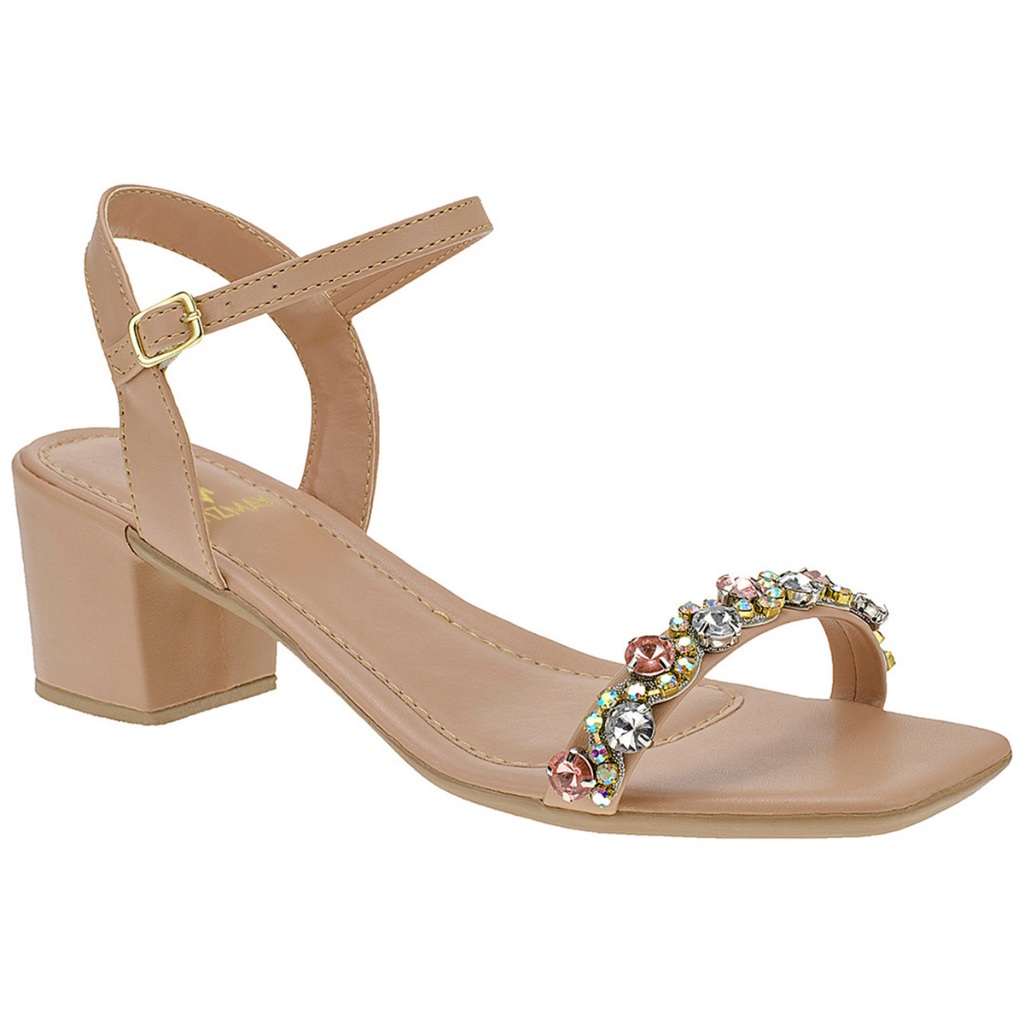 Sandália de Pedraria Strass com Fivela Ajustável Salto Bloco 030-100