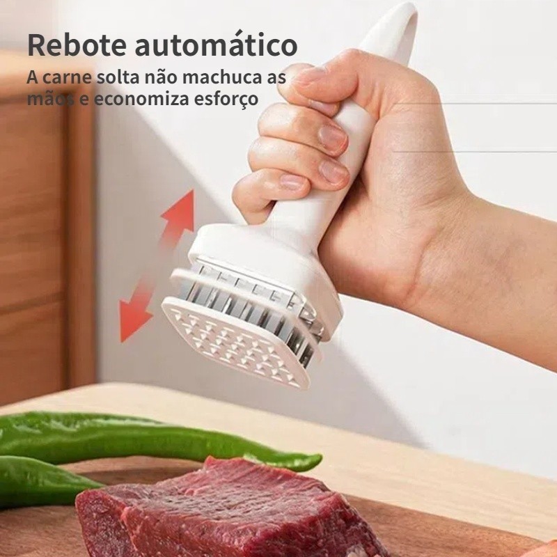 Amaciante de Carne em Aço Inoxidável | Martelo com Agulhas para Bife, Frango e Porco
