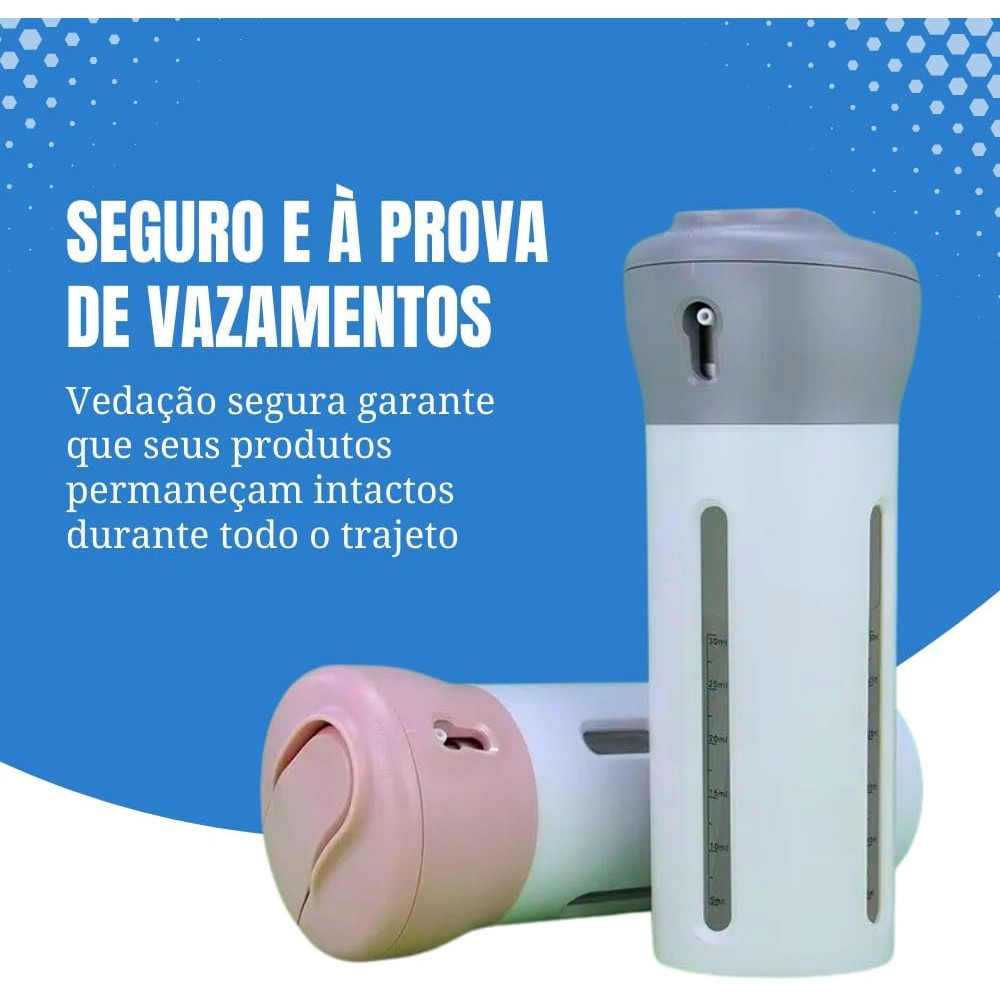 Kit Viagem 4 em 1 Porta Shampoo e Condicionador – Frascos Recarregáveis e Compactos para Viagem