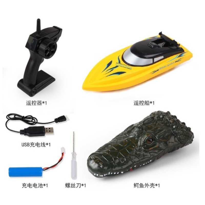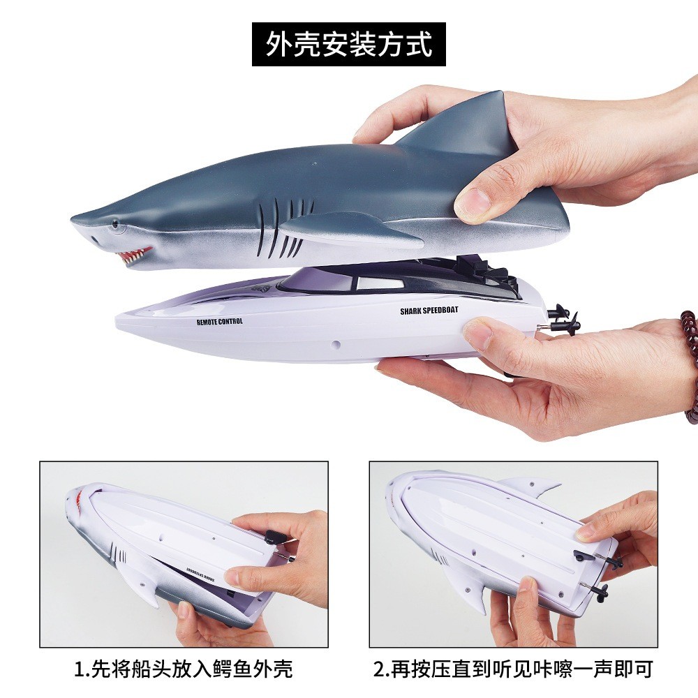 Barco Lancha Simulação de Tubarão e Jacaré 2 Em 1 Shark Controle Remoto Bateria Recarregável