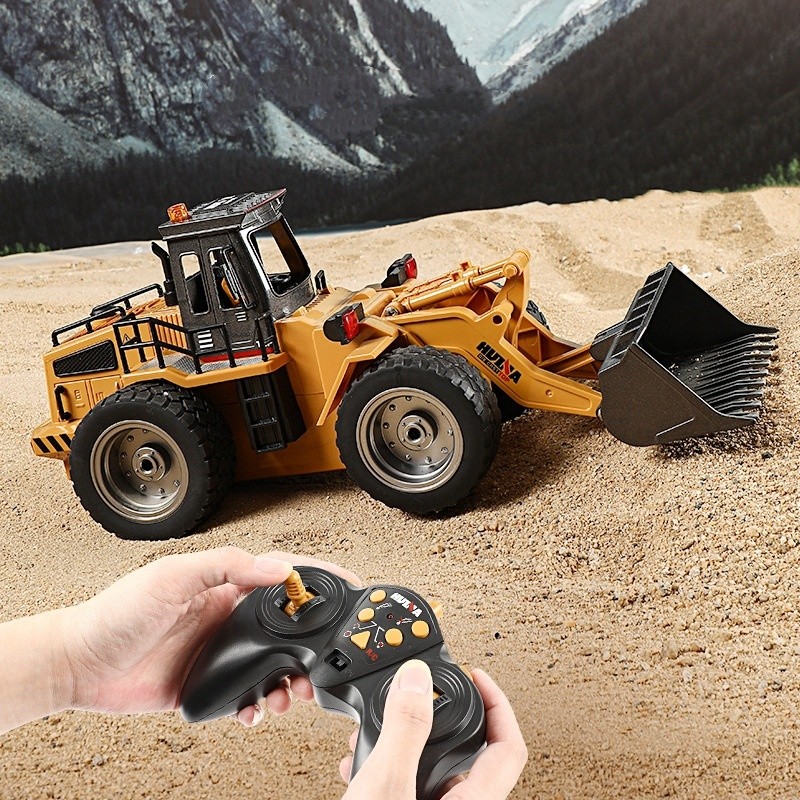 Trator Escavadeira de Controle Remoto HUINA Articulado Concha de Metal