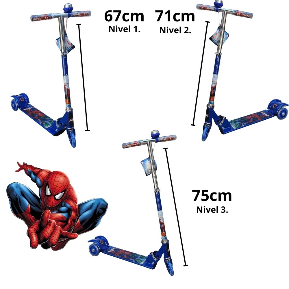 Patinete Infantil Dobrável Com Homem Aranha e Aleatoria 3 Rodas Base Scooter Led Metal Ferro Radical