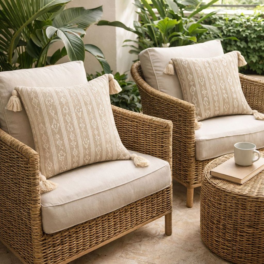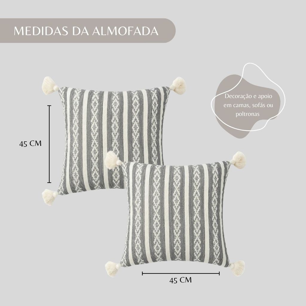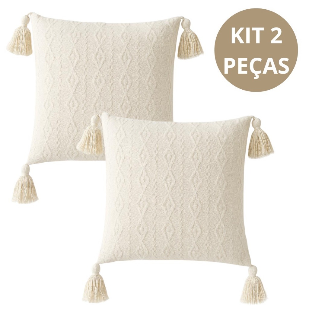 Kit 2 Capas Almofada Decorativa Boho Chic Piquet Cru com Pompom 45x45