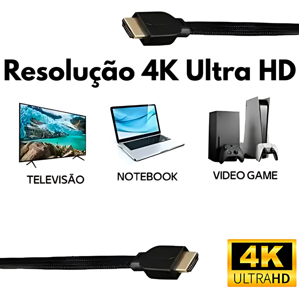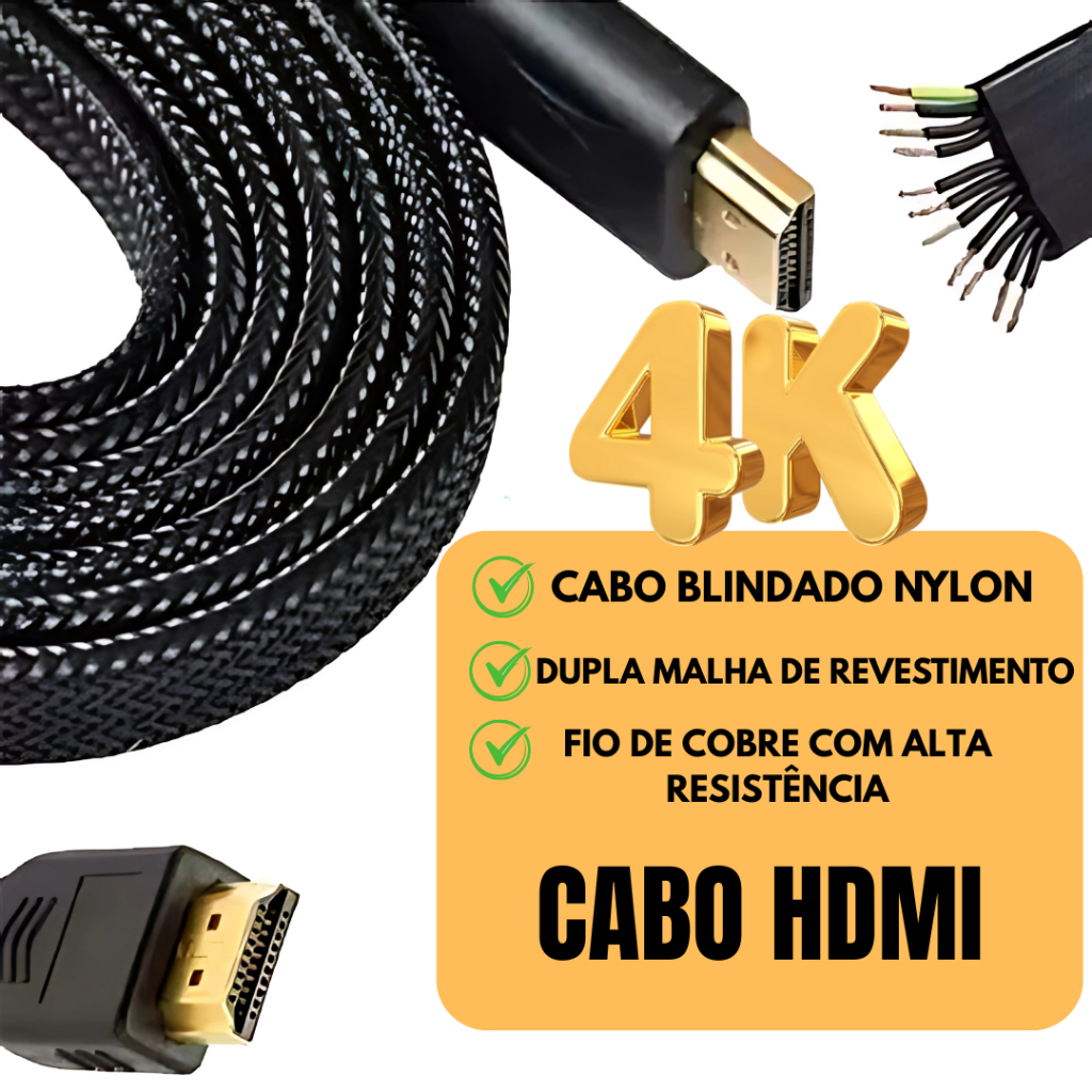 Cabo Hdmi Alta Resolução Full HD 4K 1M 2M 3M 5M Reforçado Revestimento Interno e Nylon Externo