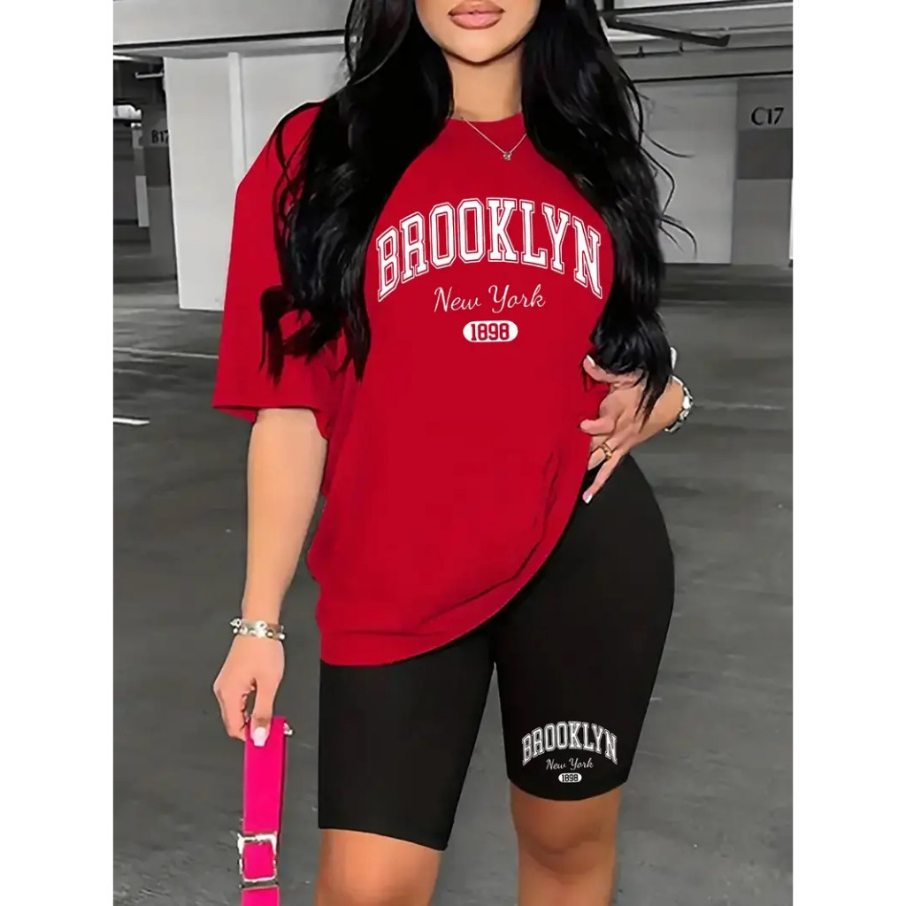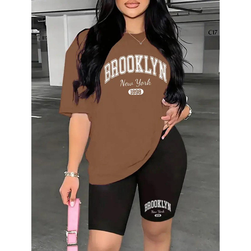 KIT SHORT LEGGINGS+CAMISETA ALGODÃO100% BROOKLYN CONFORTAVÉL BERMUDA CÓS ALTO ZERO TRANSPARENCIA