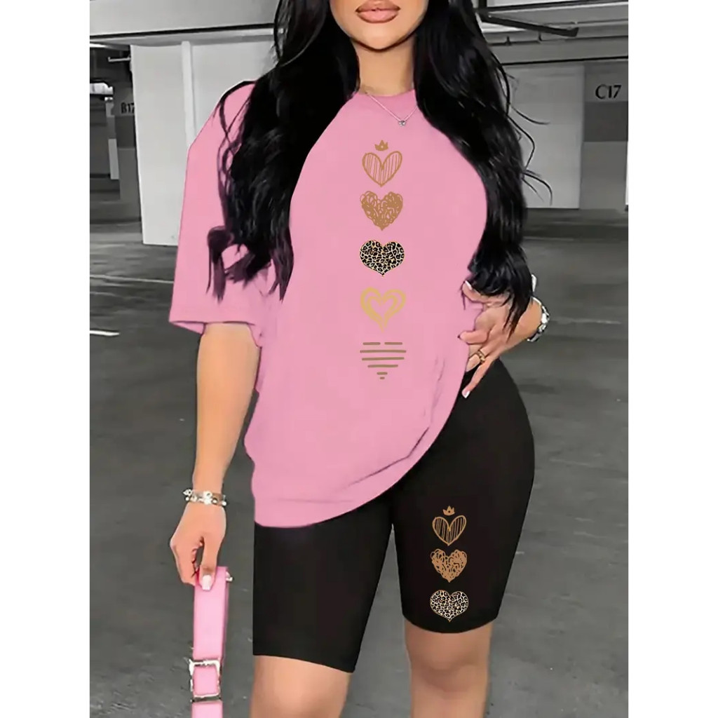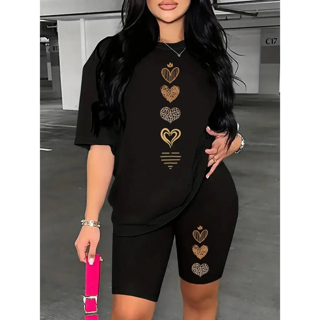 CONJUNTO BERMUDA LEGGINGS+CAMISETA FEMININO ACADEMIA VERSATIL CORAÇÕES
