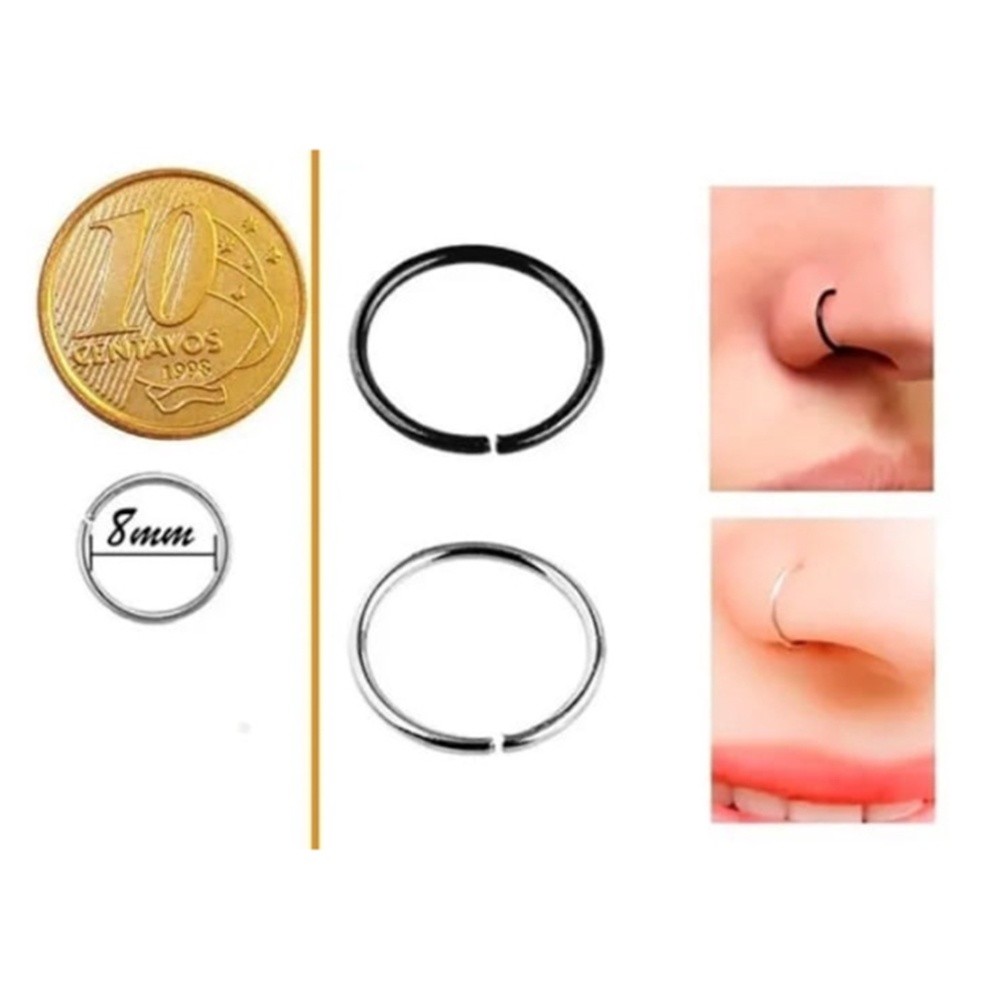 Feeling 316L Piercing Nariz Argola Falso Pressão Antialérgico - Kit 3 Un pircing