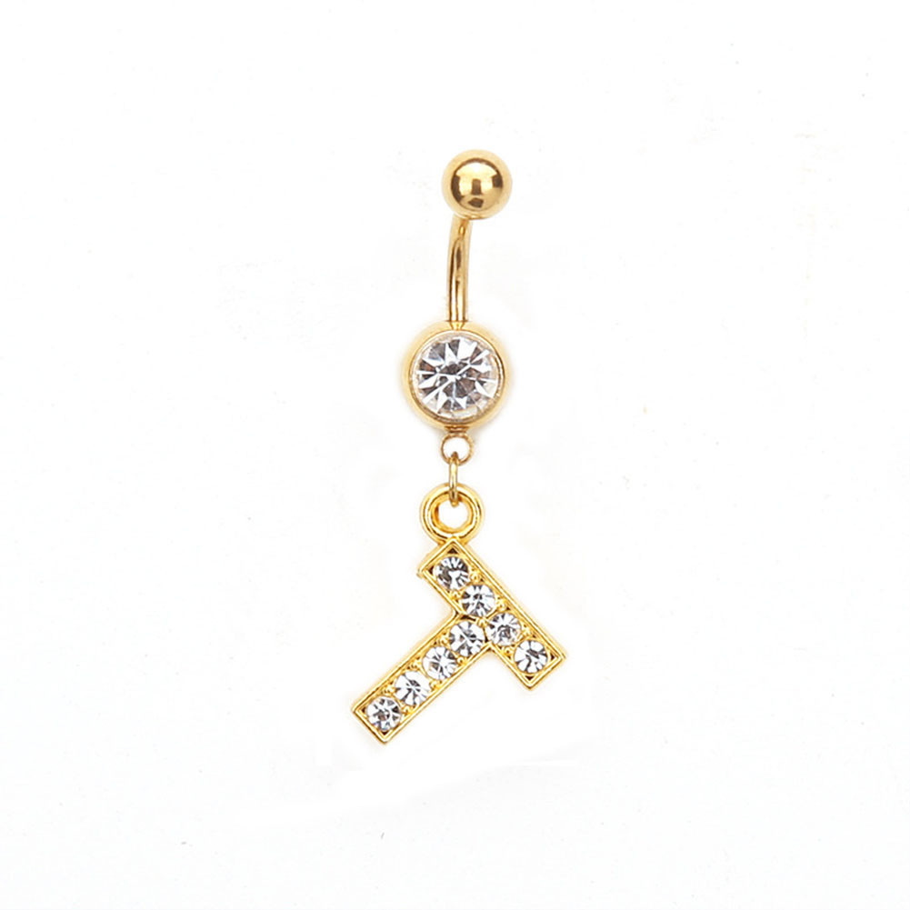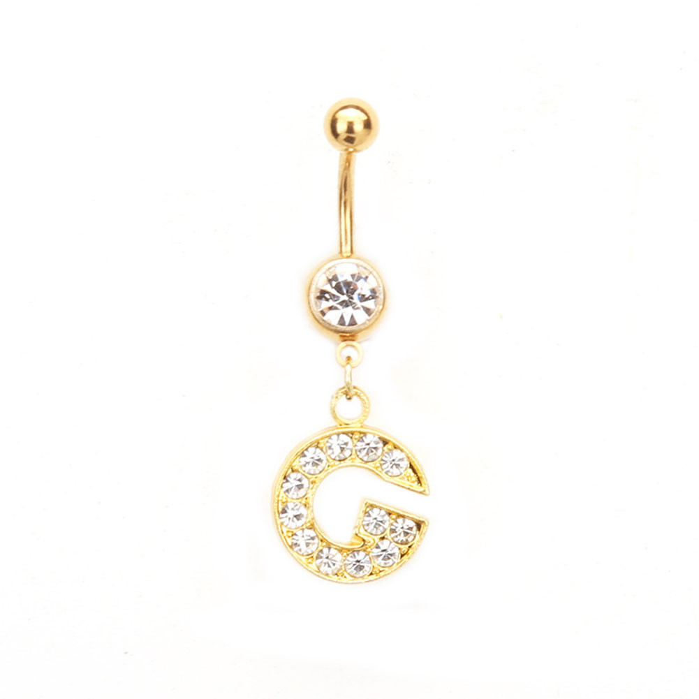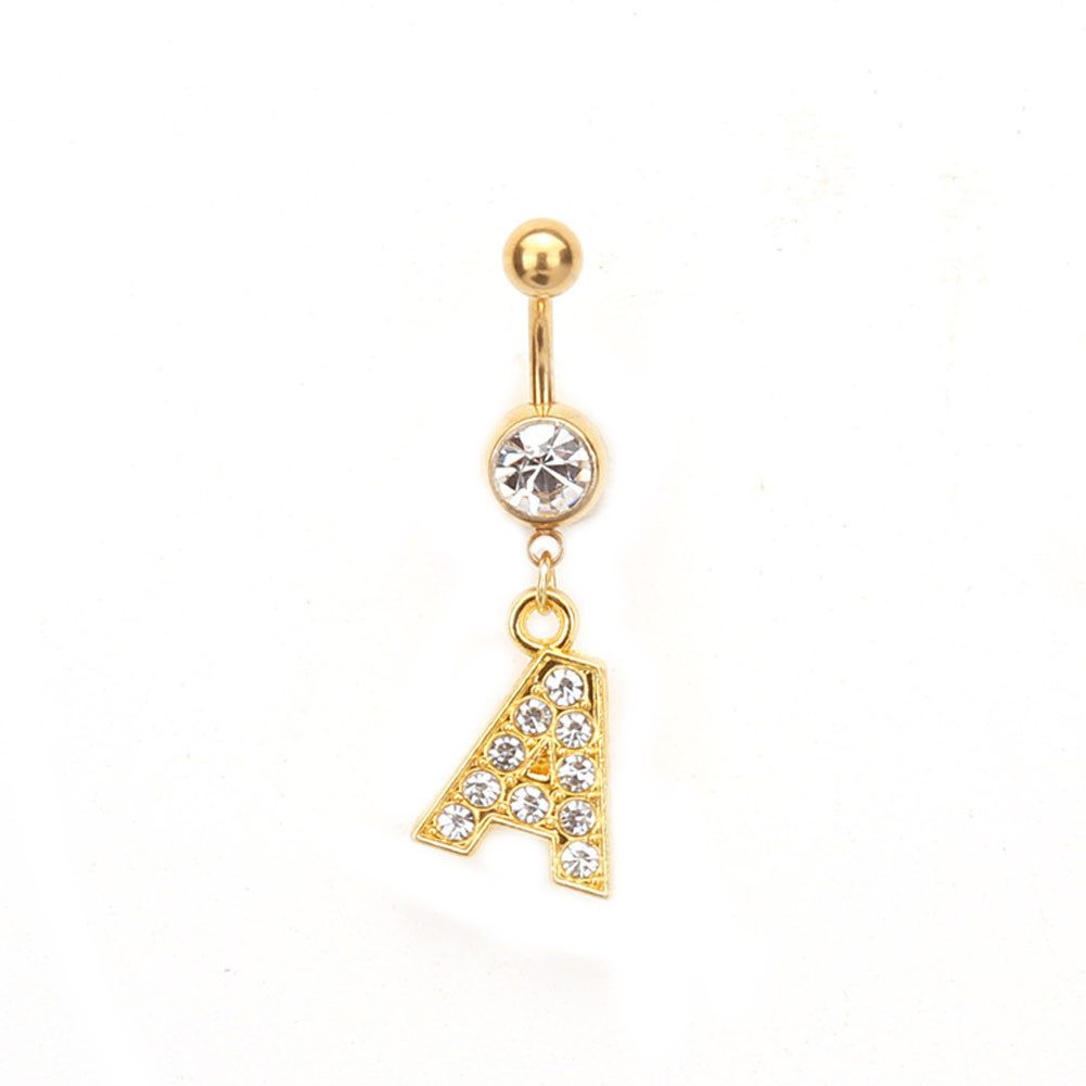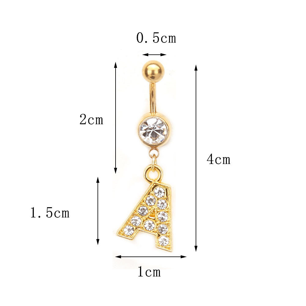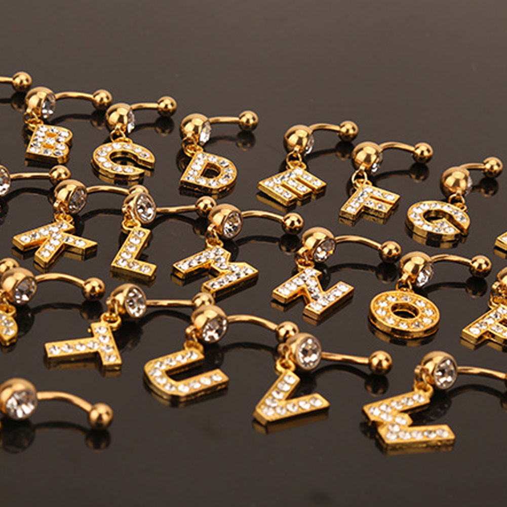 1PC Cartas Douradas A-Z Anéis De Botão De Barriga Com Glitter Diamond Personalidade Criativa Anel Do Umbigo Piercing