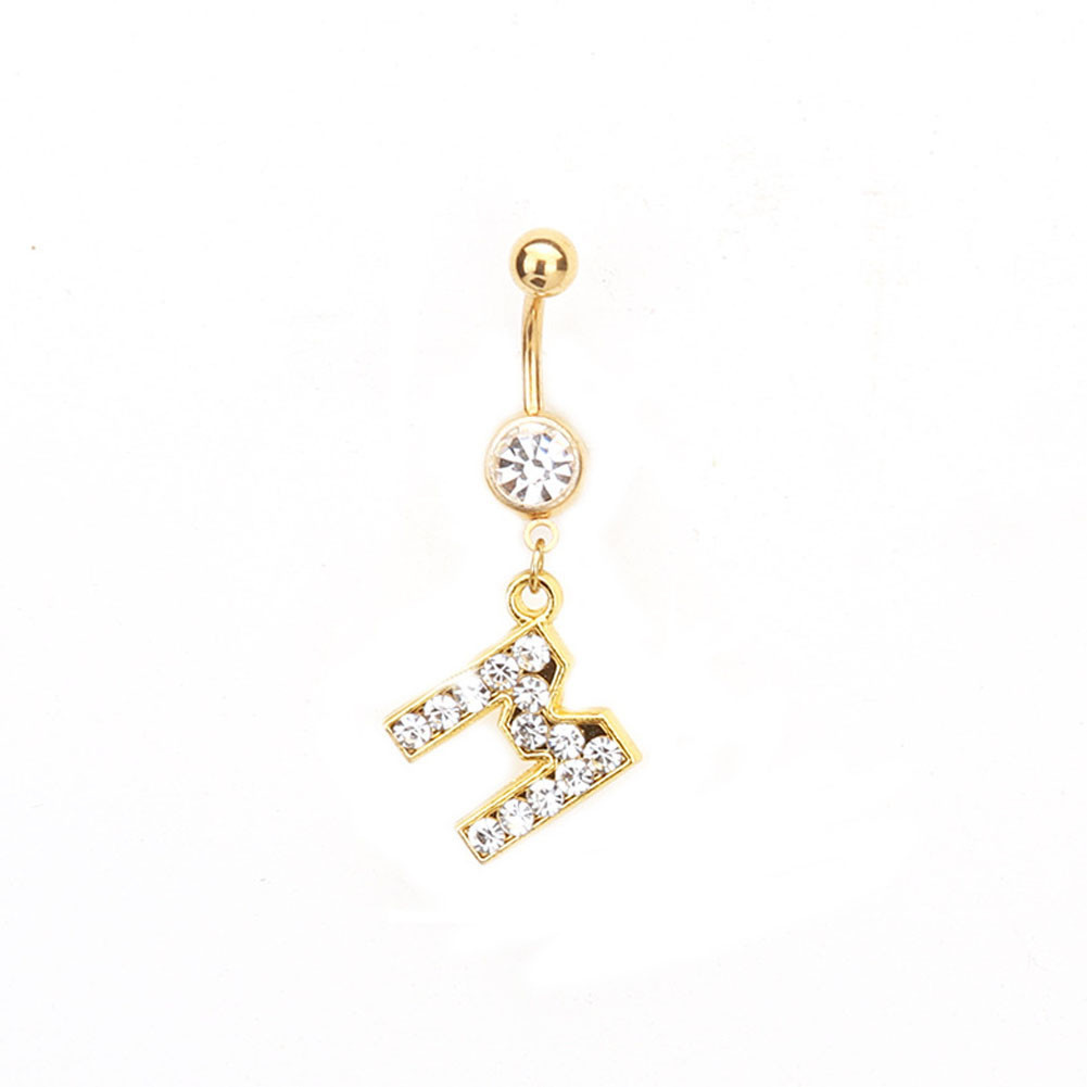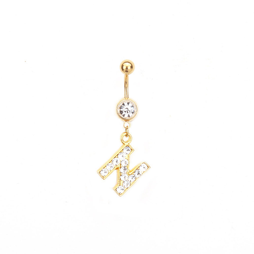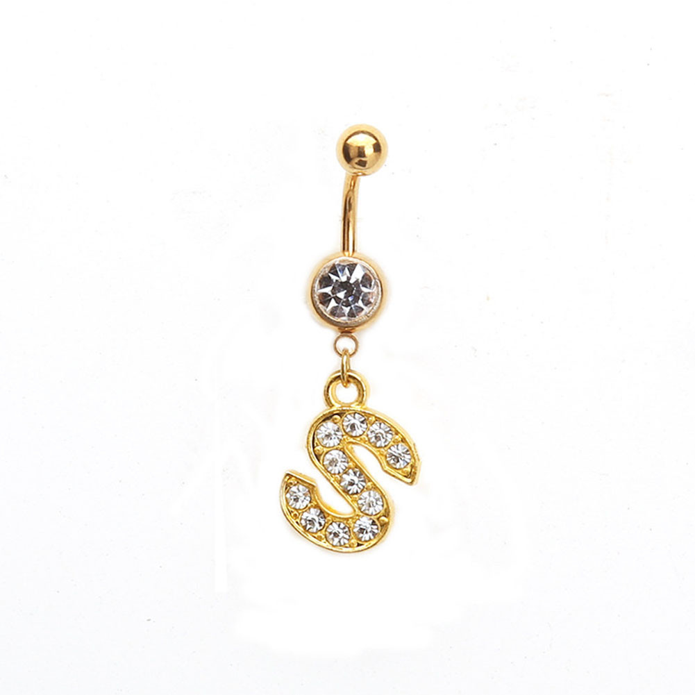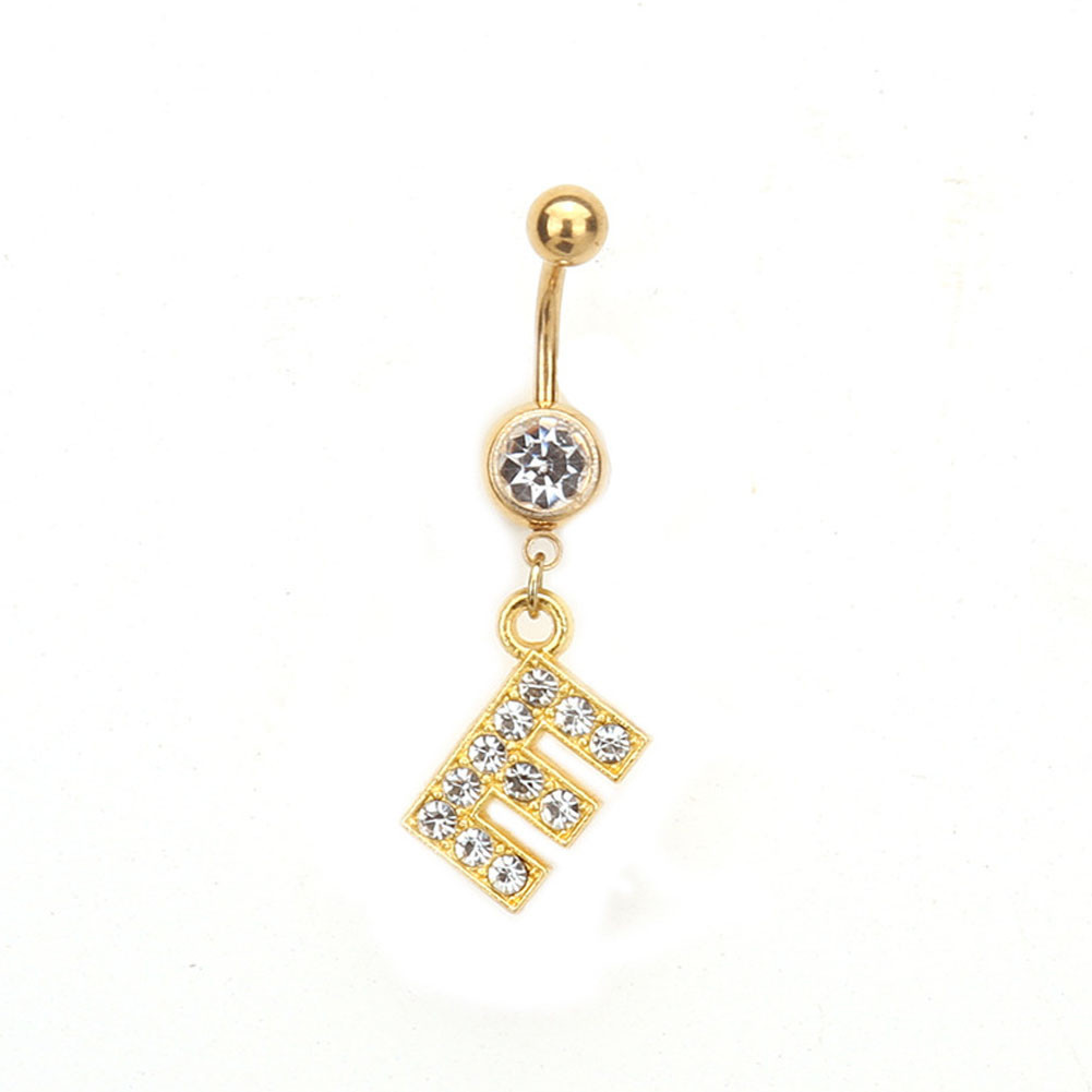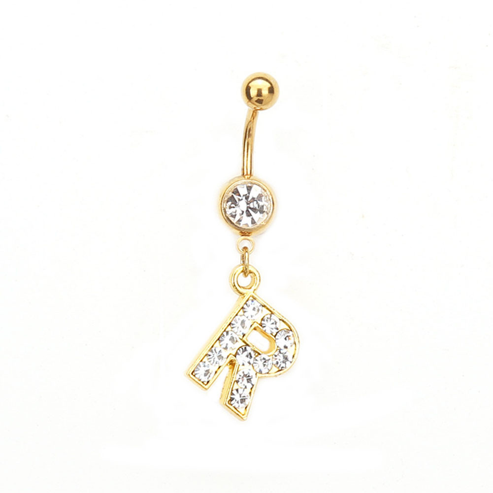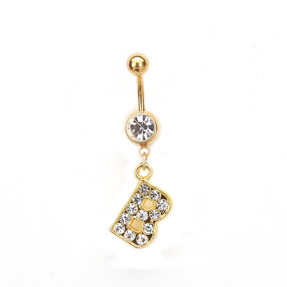 1PC Cartas Douradas A-Z Anéis De Botão De Barriga Com Glitter Diamond Personalidade Criativa Anel Do Umbigo Piercing