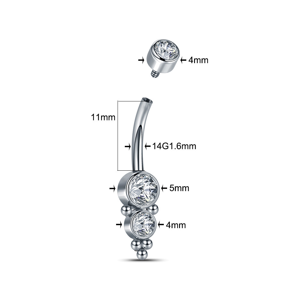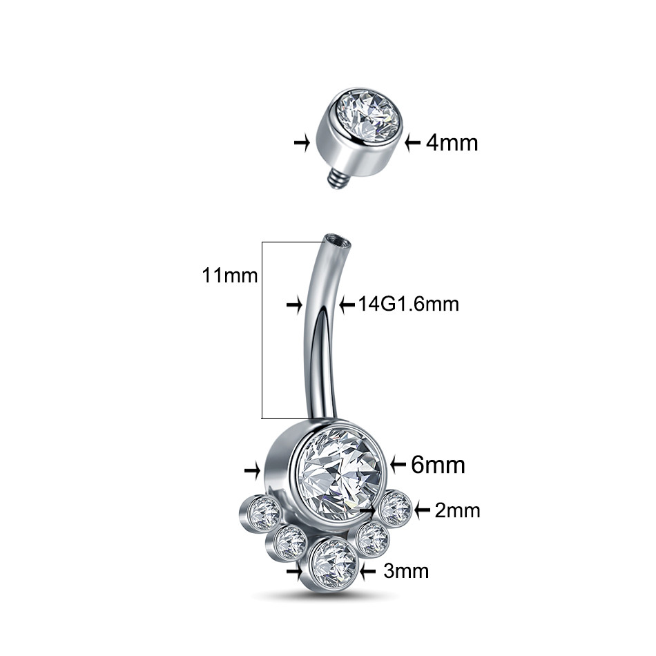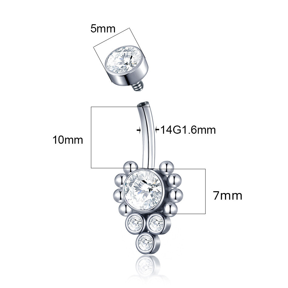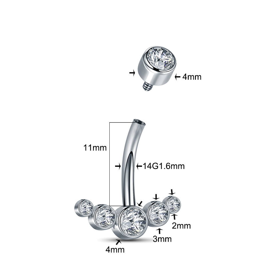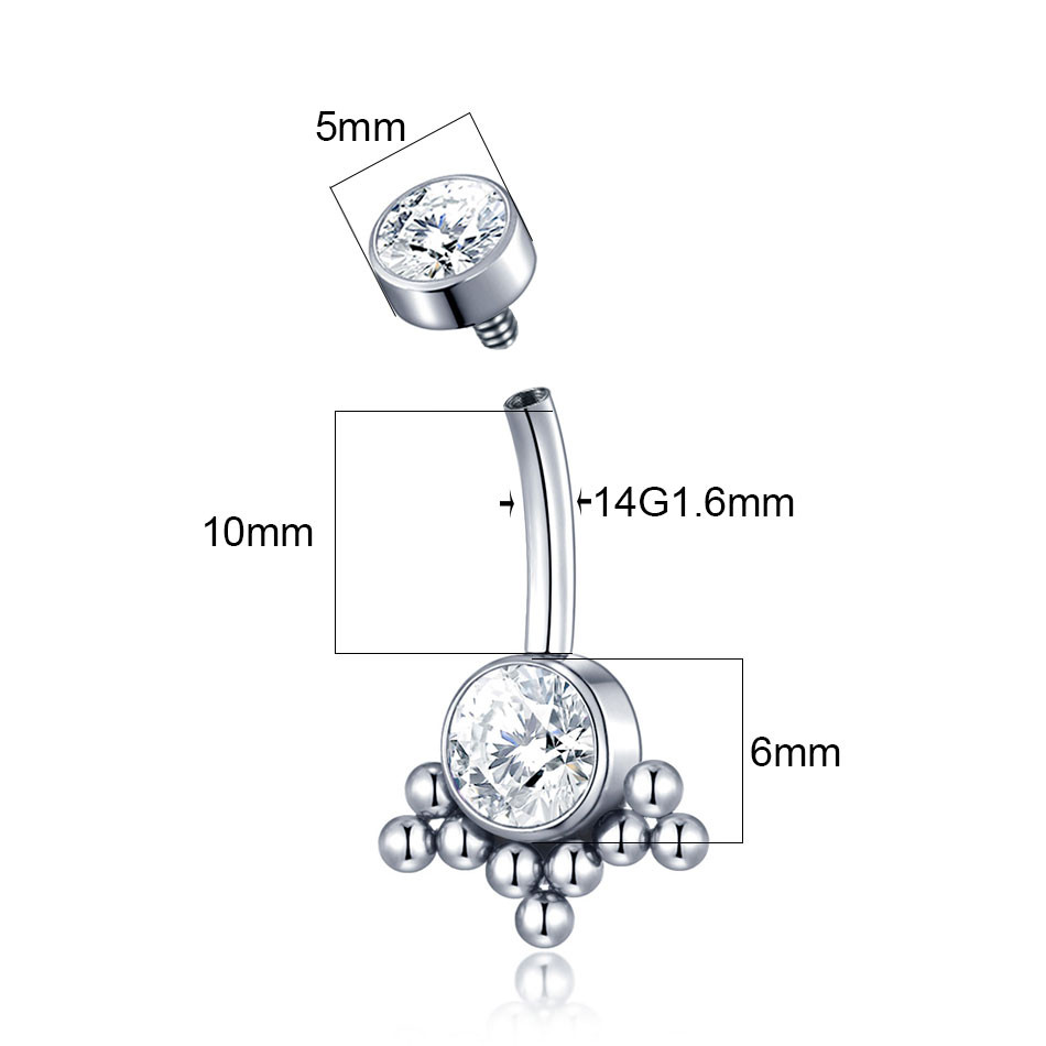 Feeling 316L Piercing Umbigo De Aço Inoxidável Interno Anel Roscado Mulheres Zircon Barras Body Jewelry Nombril