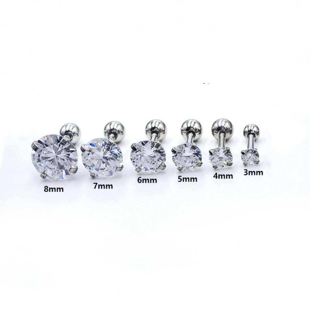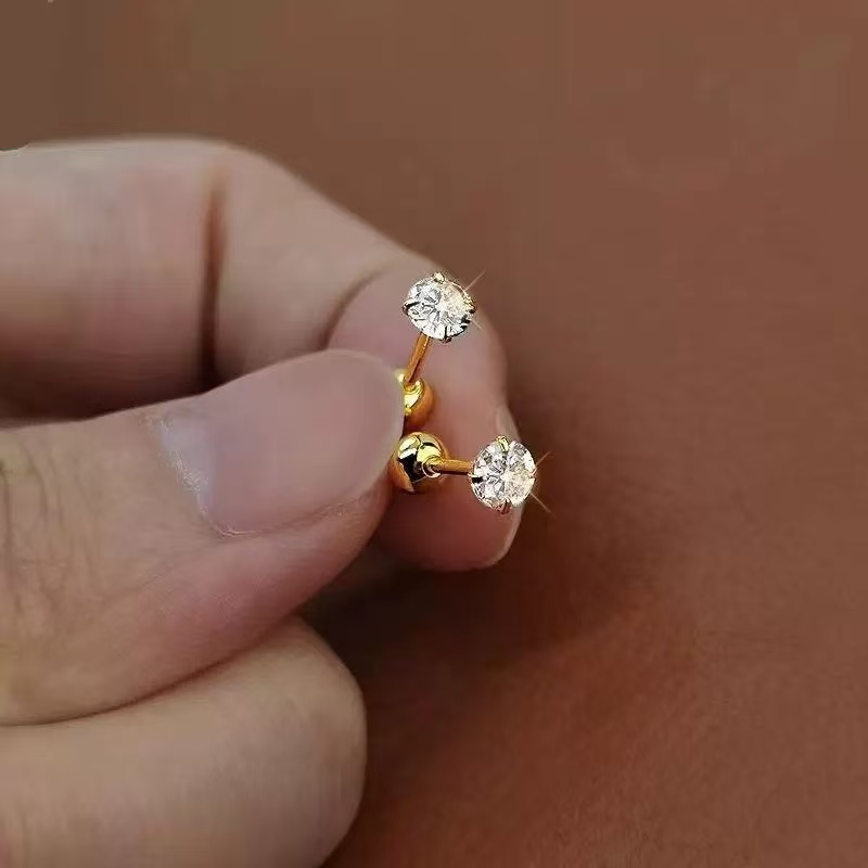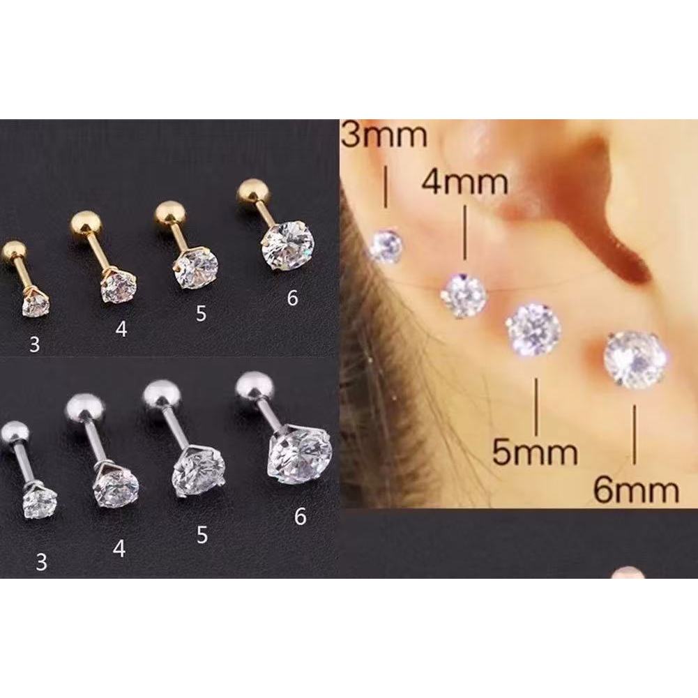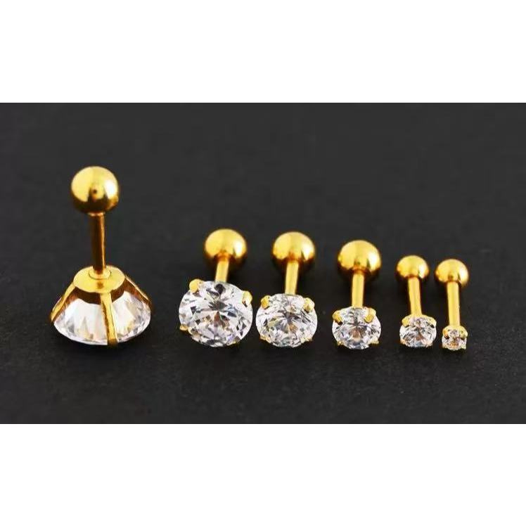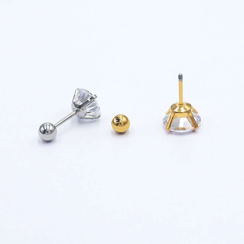 Feeling 316L Brinco De Tarraxa De Aço Inoxidável Cz 3 Prong Tragus / Cartilagem Com Cristal De Zirconita / Joias De Ouro