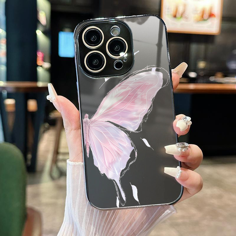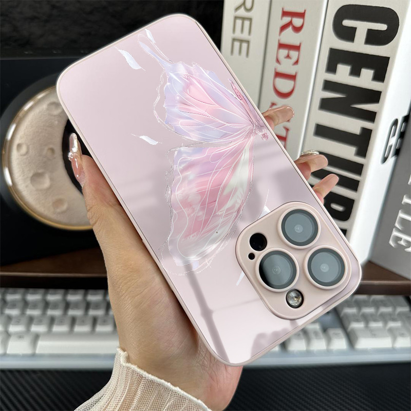 Capinha capa AG vidro silicone à prova choque borboleta para iPhone 11 12 13 6 7 8 14 15 17 air pro max x/xs xr xs.max