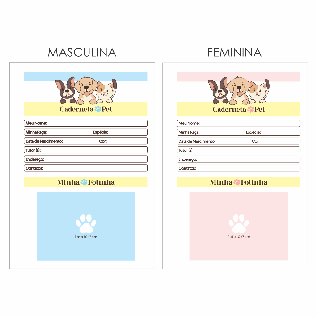 Caderneta Pet Personalizada com mini álbum de fotografias