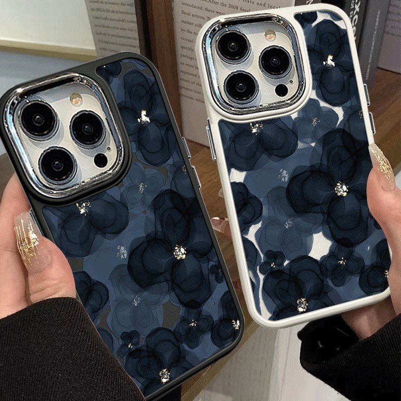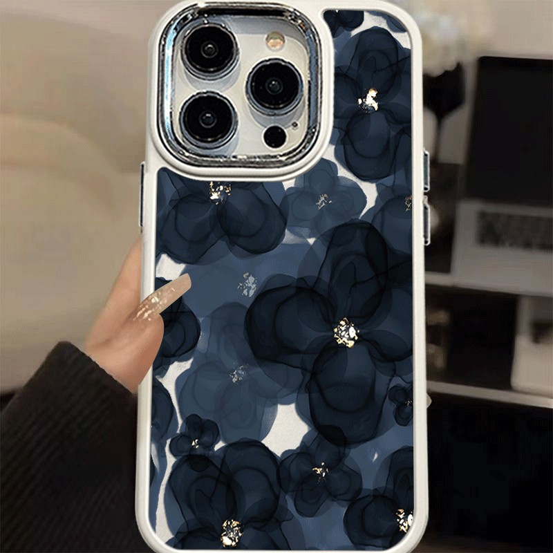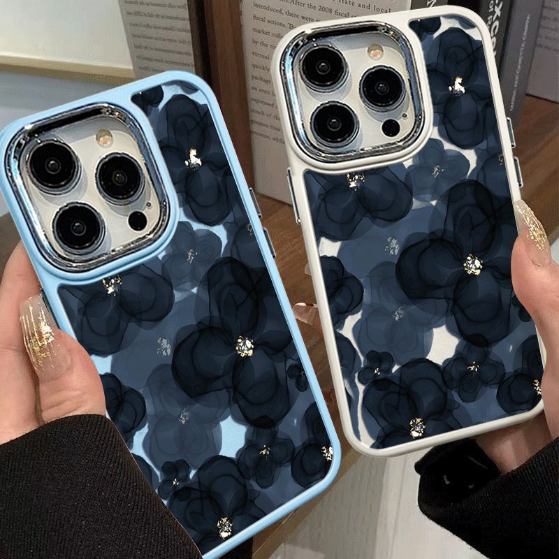 Capinha Capa Resistente A Choques De flores azuis adequada para iPhone xs max xr 11 12 13 14 15 pro max case