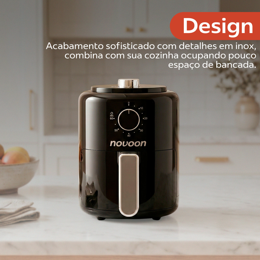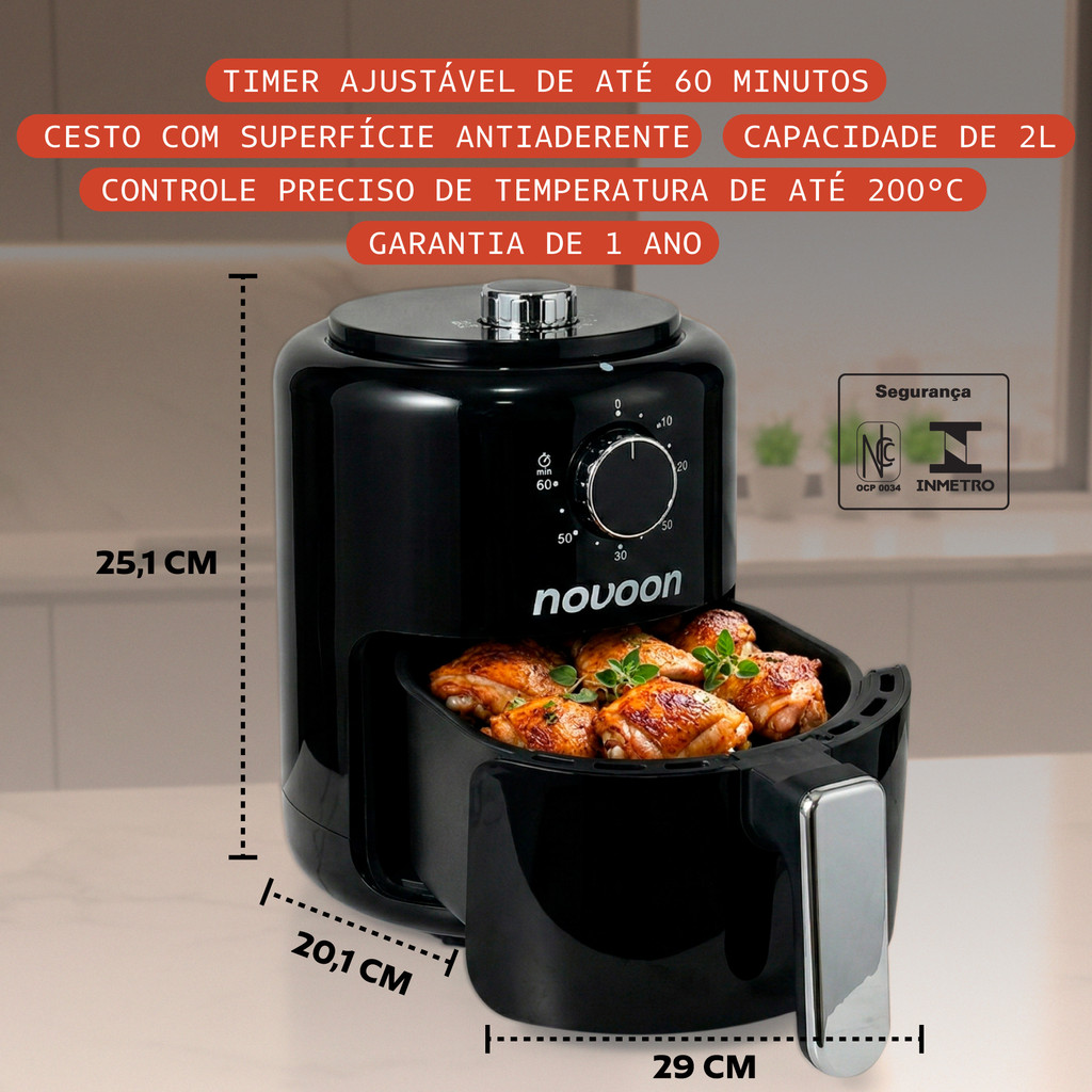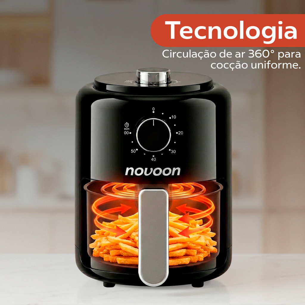 Mini Air Fryer 2L Compacta Novoon 800W Ideal 1-2 Pessoas Econômica Pequenos Espaços 110V/220V