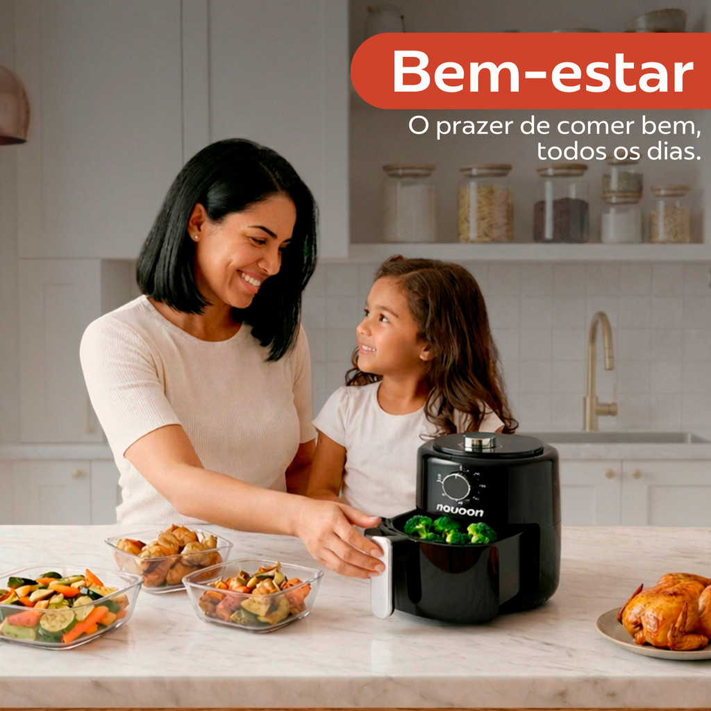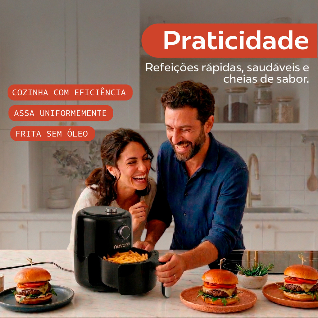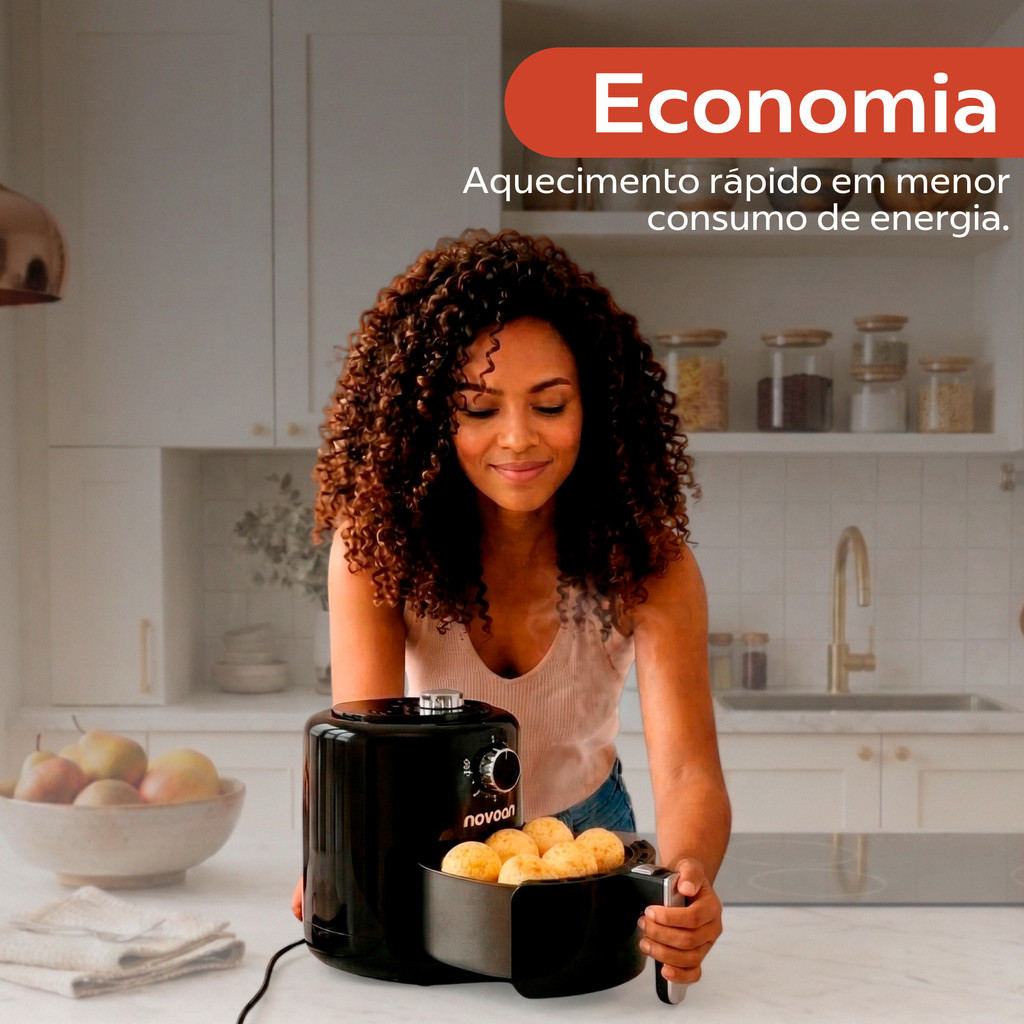 Mini Air Fryer 2L Compacta Novoon 800W Ideal 1-2 Pessoas Econômica Pequenos Espaços 110V/220V
