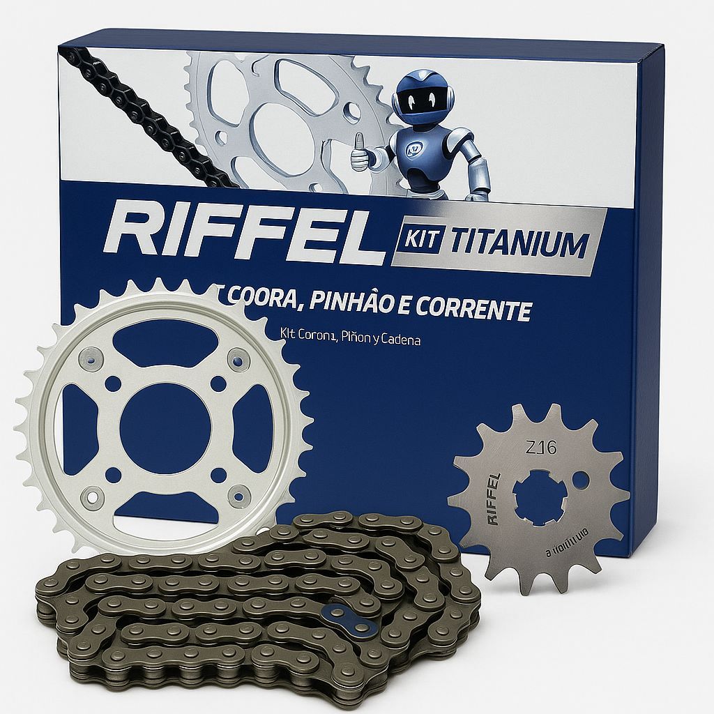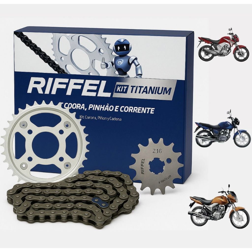 Kit Relação Transmissão Tração Titan Fan Start 150/160 Riffel Aço 1045 Promoção aço 1045
