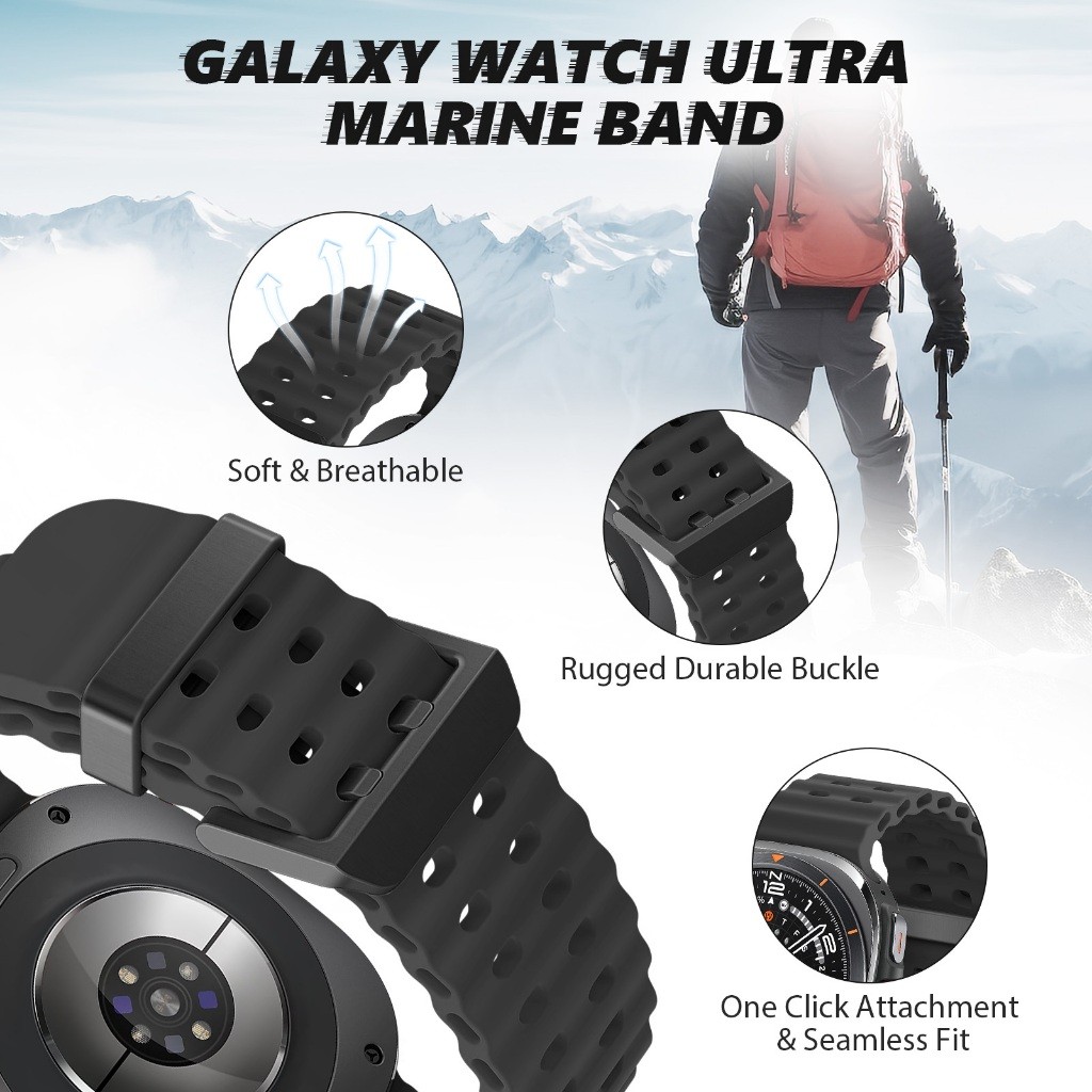 Pulseira de Silicone Para Samsung Galaxy Watch 7 Ultra 47mm Ocean Doble Botonadura