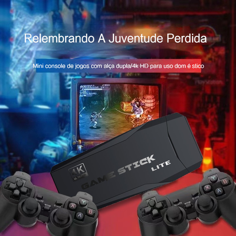 20000+ M8 Videogame Stick 4K 64gb 2 Controles Sem Fio Console Portatil Jogos Retro Antigo Original