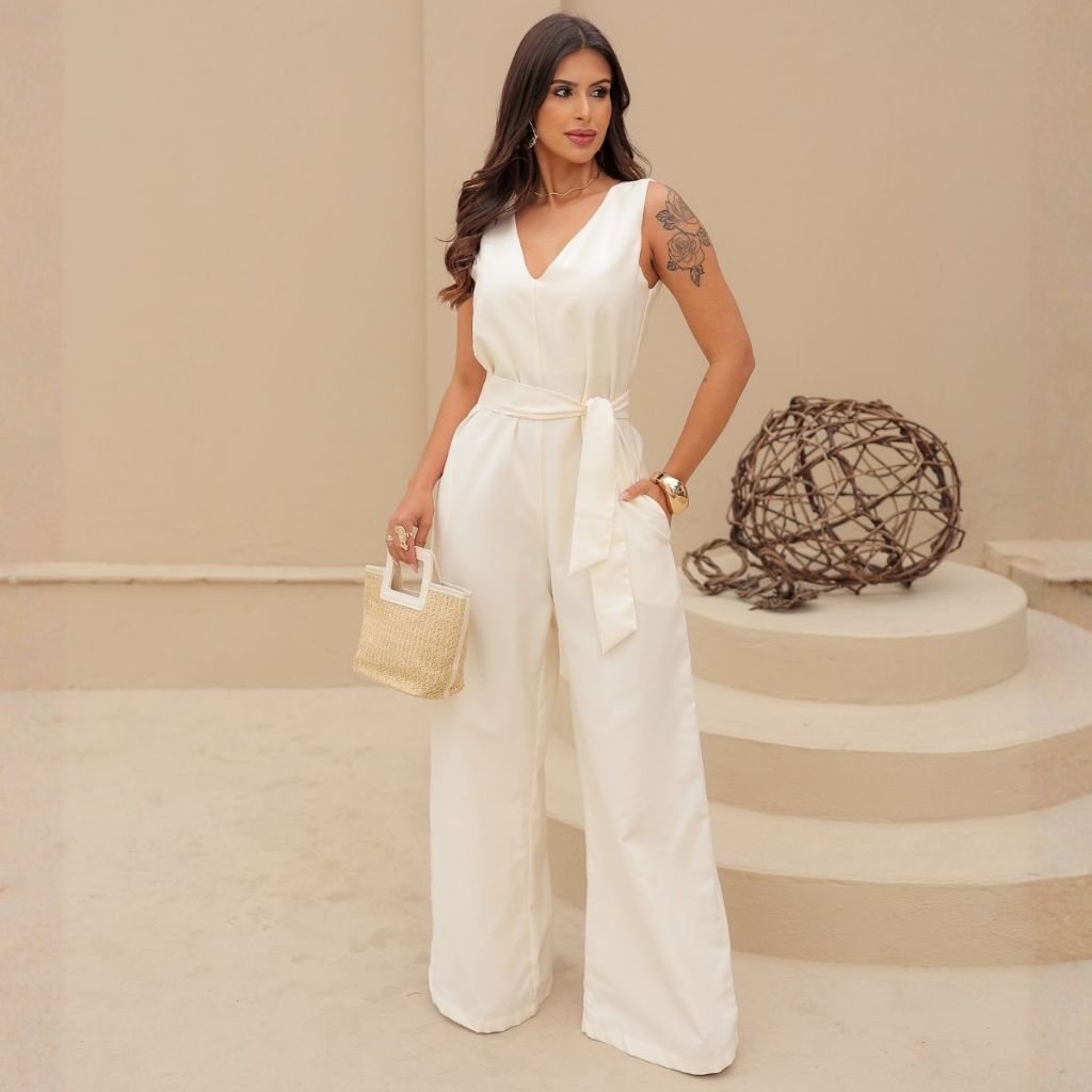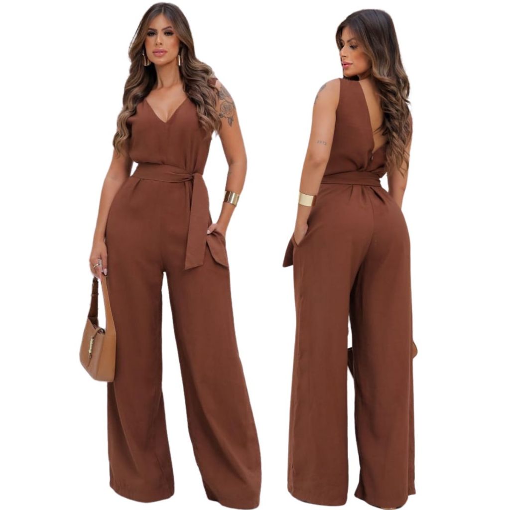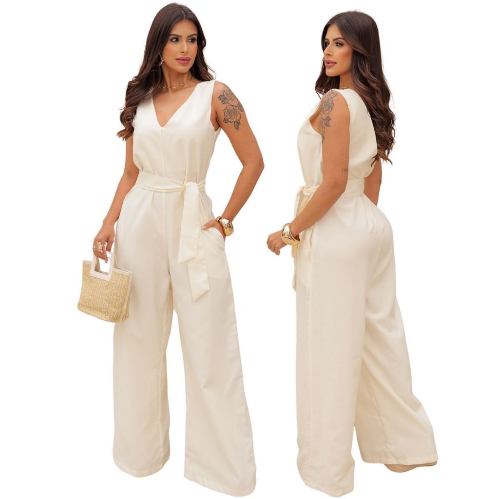 Macacão Feminino Pantalona Longo Luxo Festa Elegante Social Casual Chique