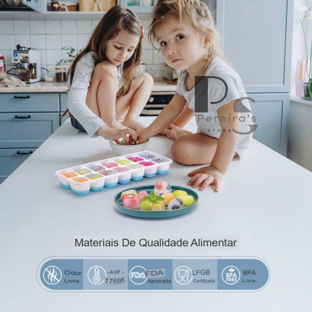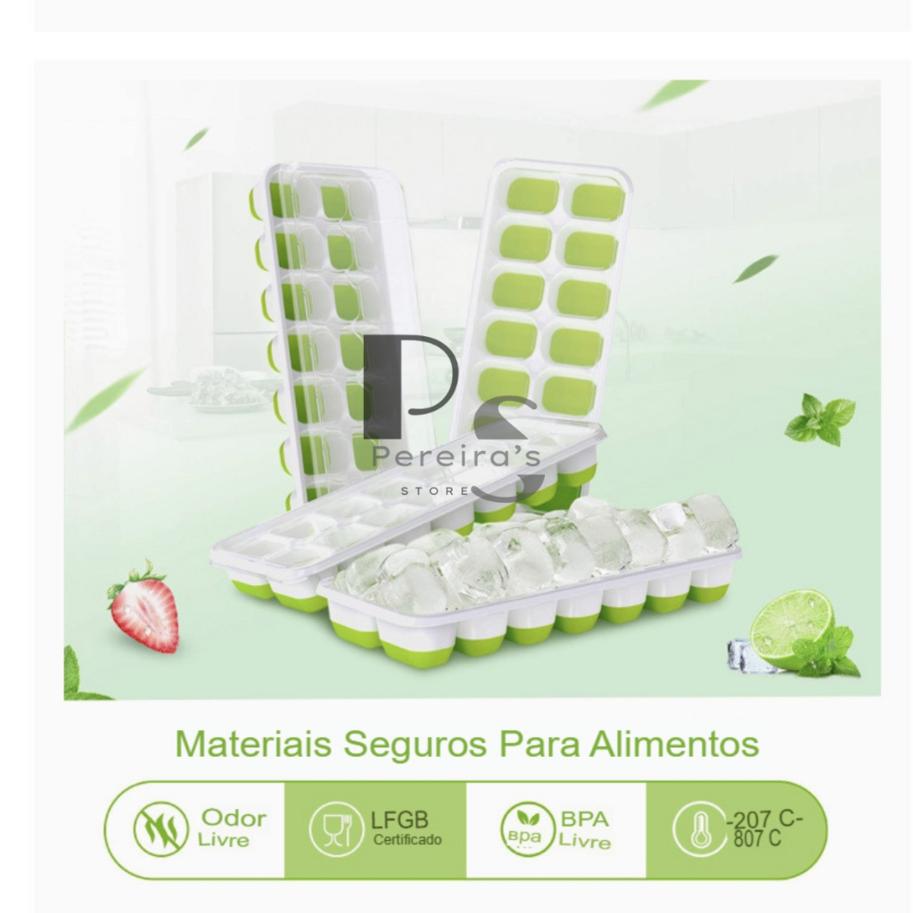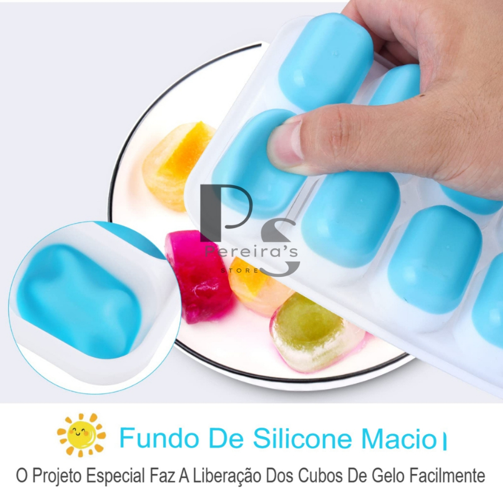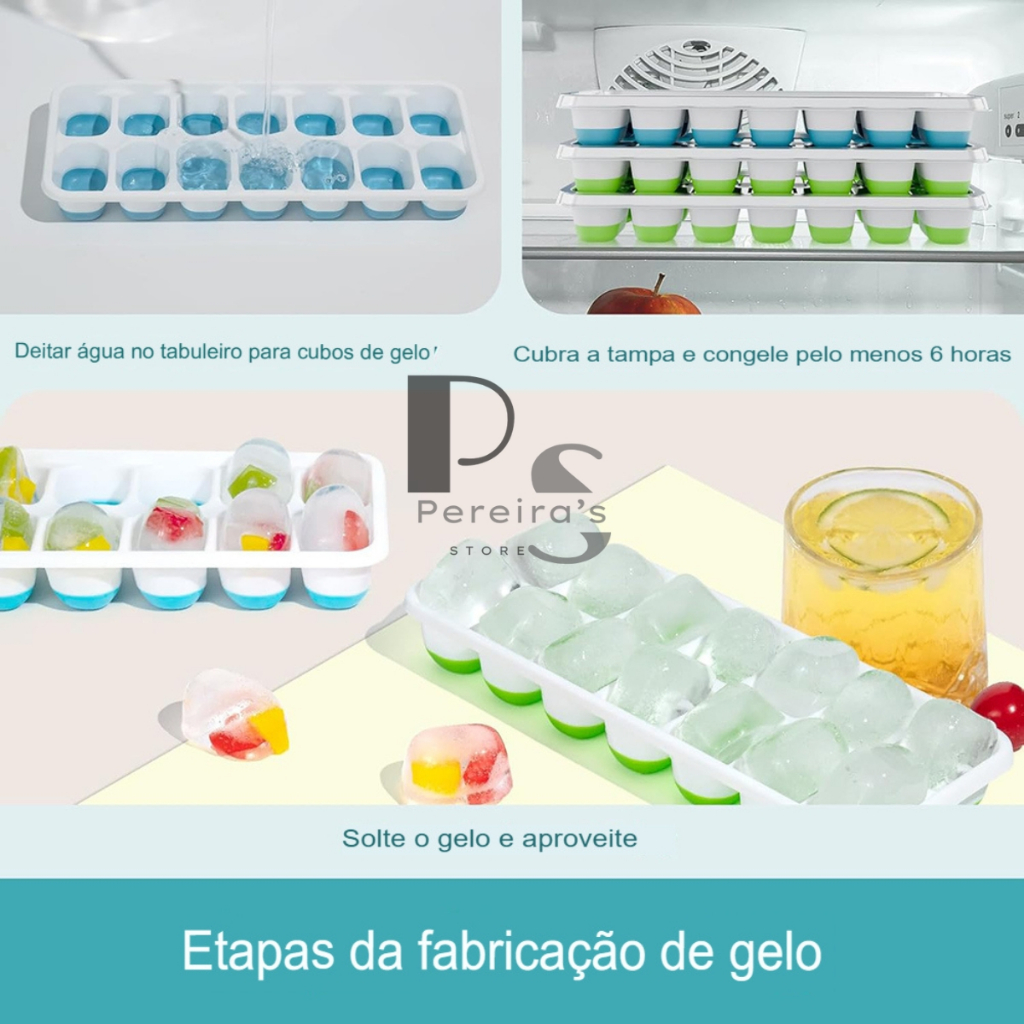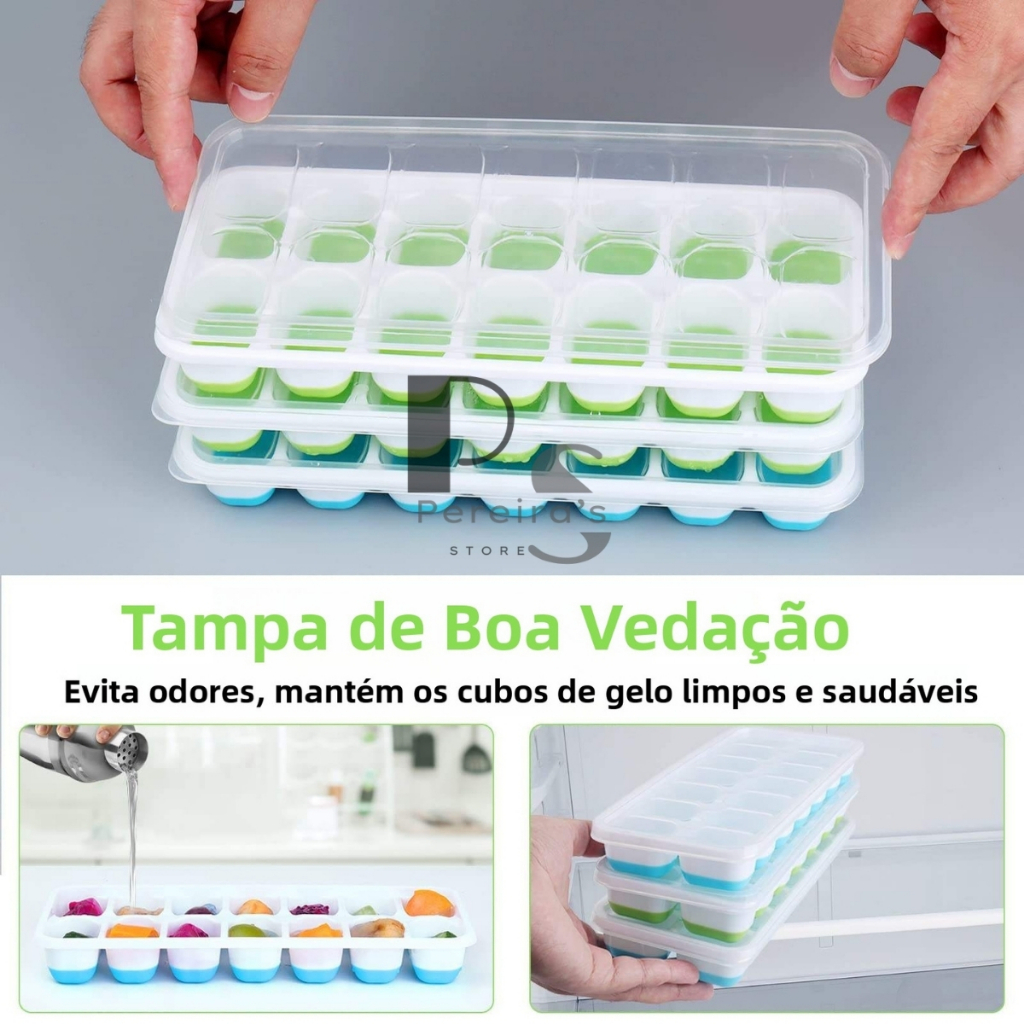 Kit 4 Formas de Gelo Silicone Com Tampa Rígida e Flexível Cubo de Gelo