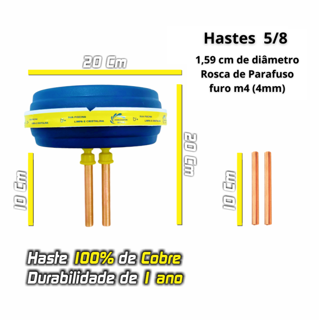 Ionizador Solar Duplo Piscina De 50 A 80 Mil Litros Sem Cloro hastes de puro cobre 5/8 GROSSA