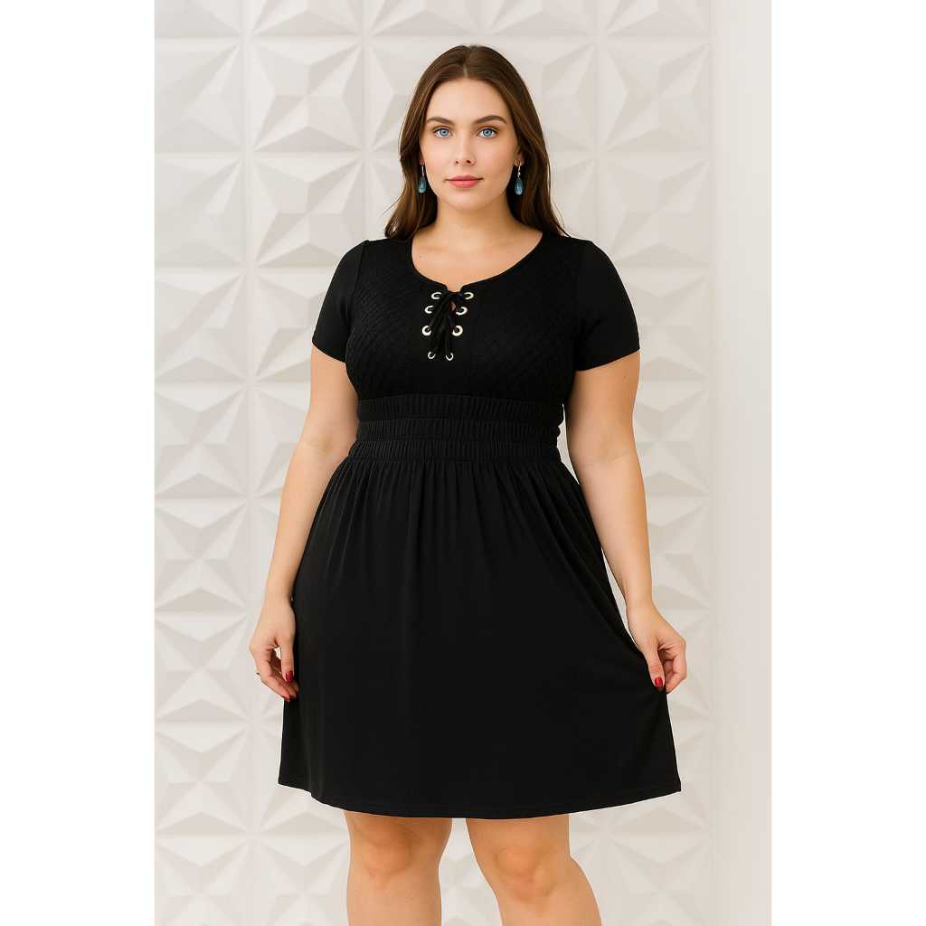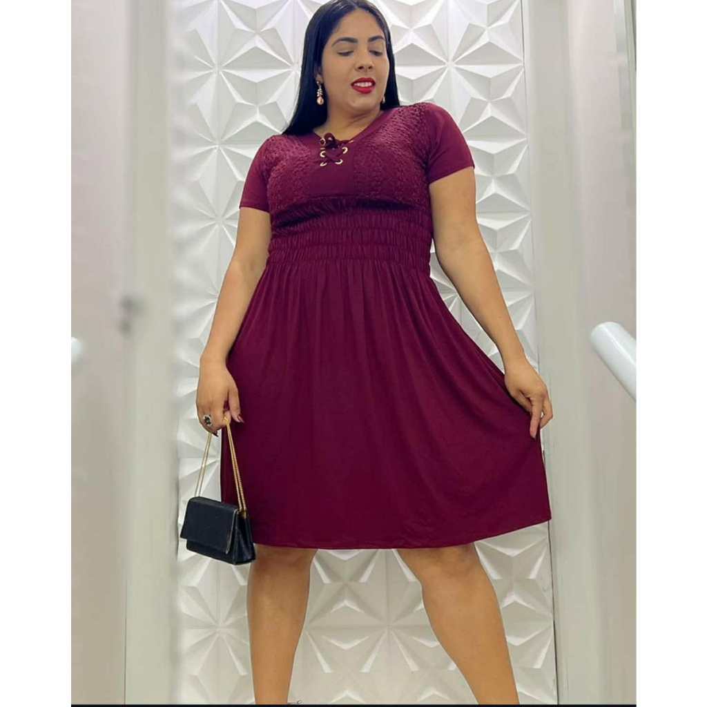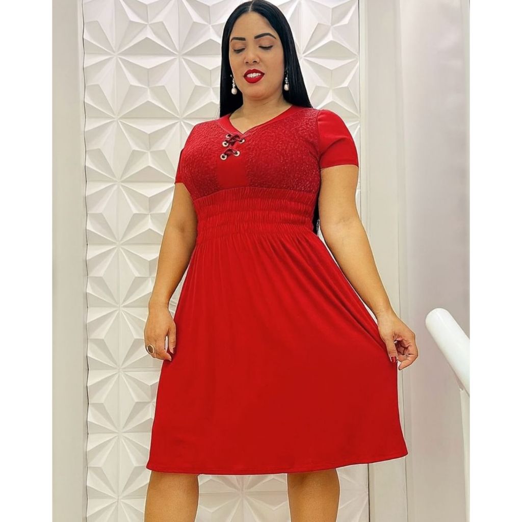 VESTIDO FEMININO CURTO PLUS SIZE RENDA MANGA CURTA