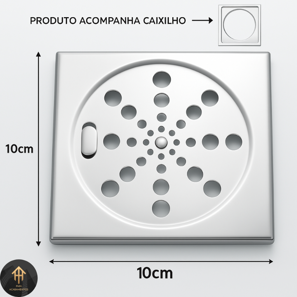 Grelha Ralo Quadrado 10x10 + Porta Grelha Caixilho Inox