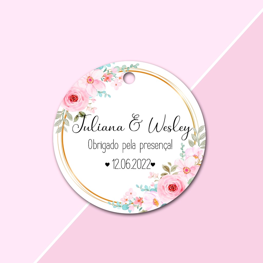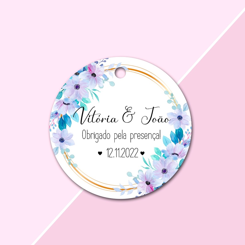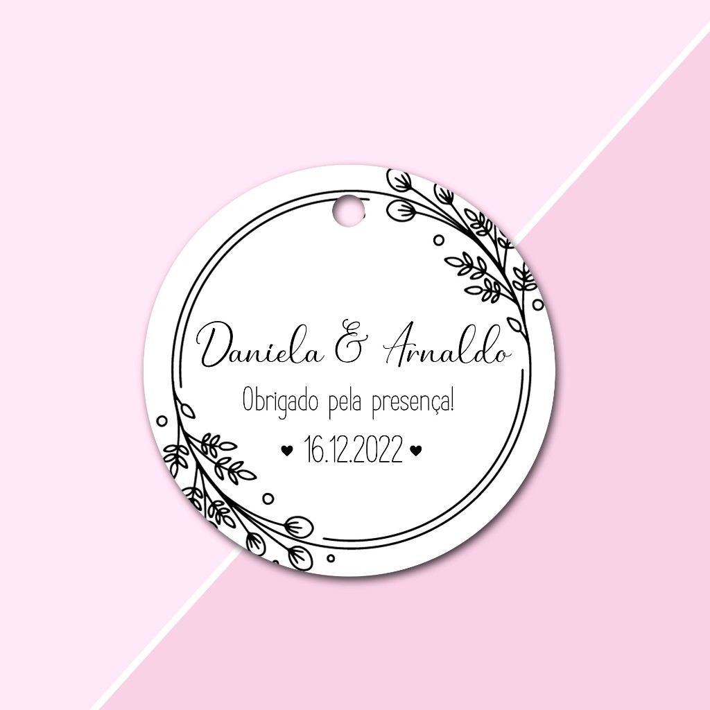 100 Tag Personalizado 4,5x4,5cm Papel Glossy Redondo Lembrancinha para Casamento Noivado Chá Cozinha