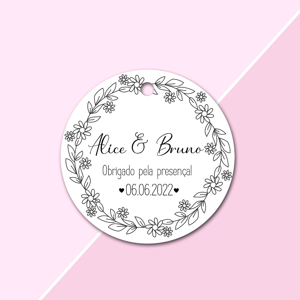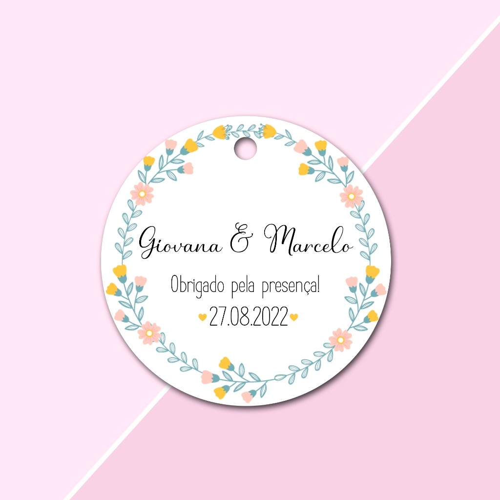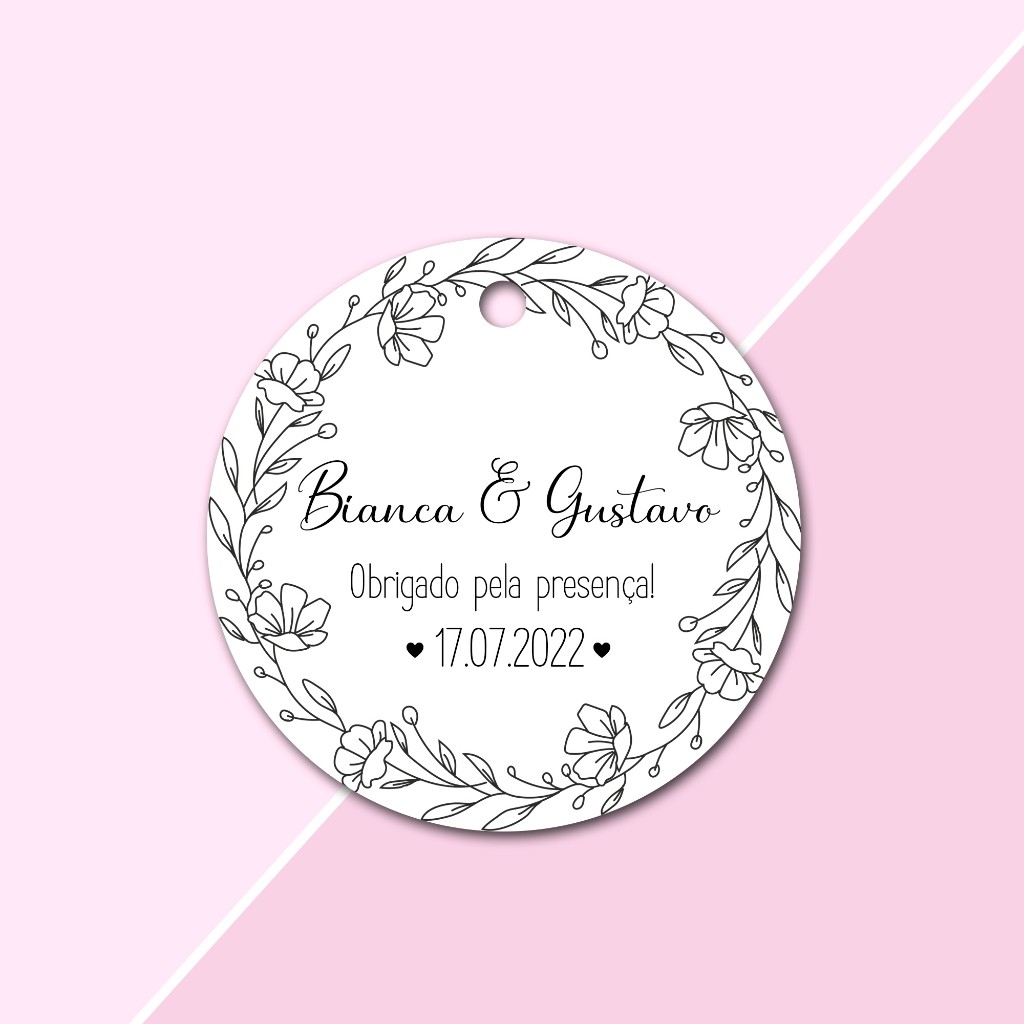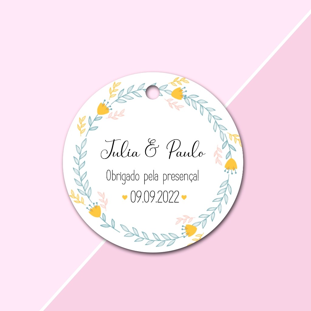 100 Tag Personalizado 4,5x4,5cm Papel Glossy Redondo Lembrancinha para Casamento Noivado Chá Cozinha