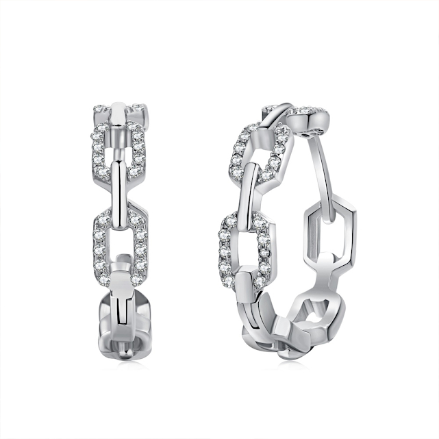 Brinco de Argola em estilo corrente cravejado | Prata 925