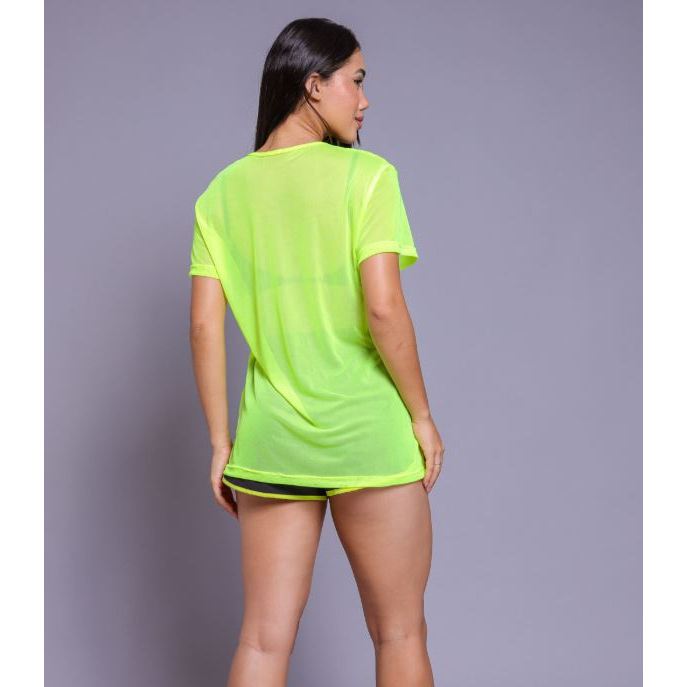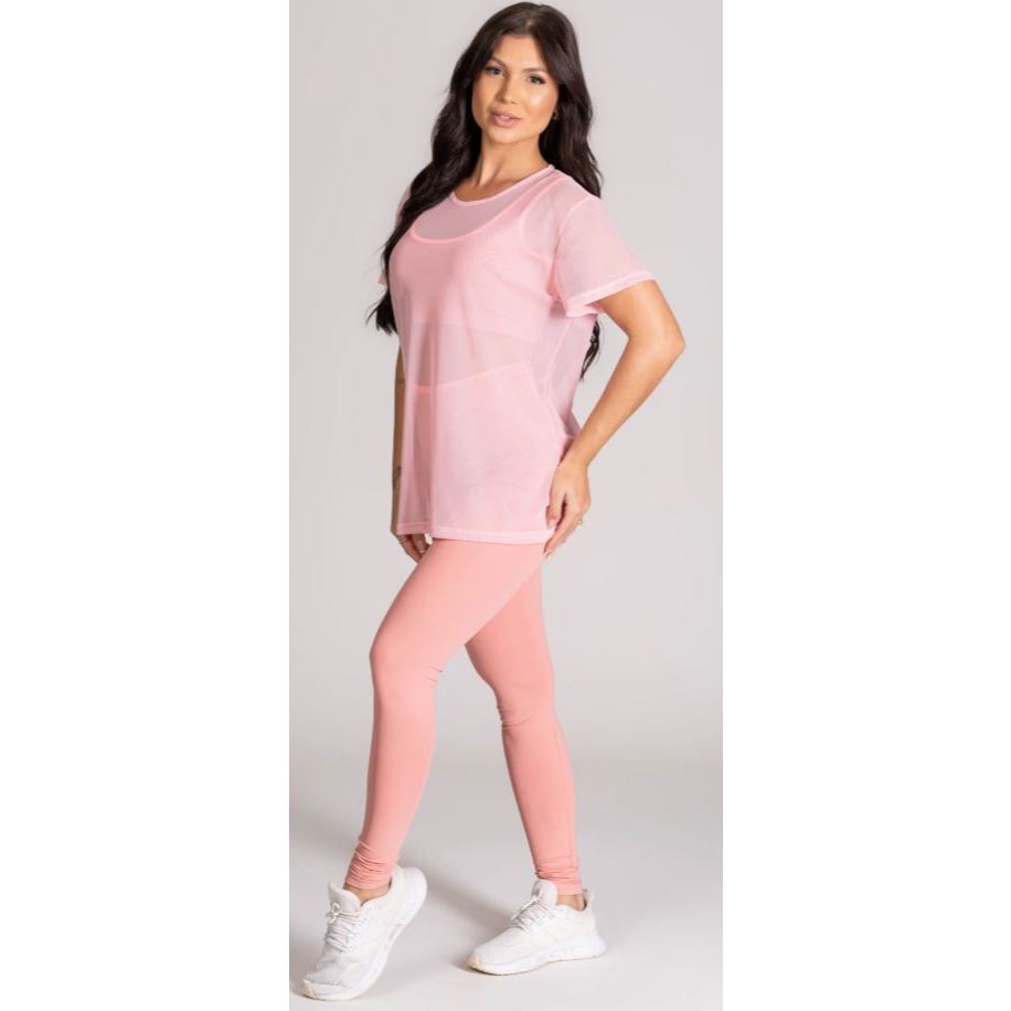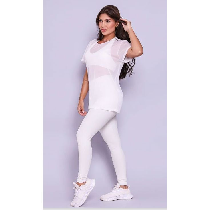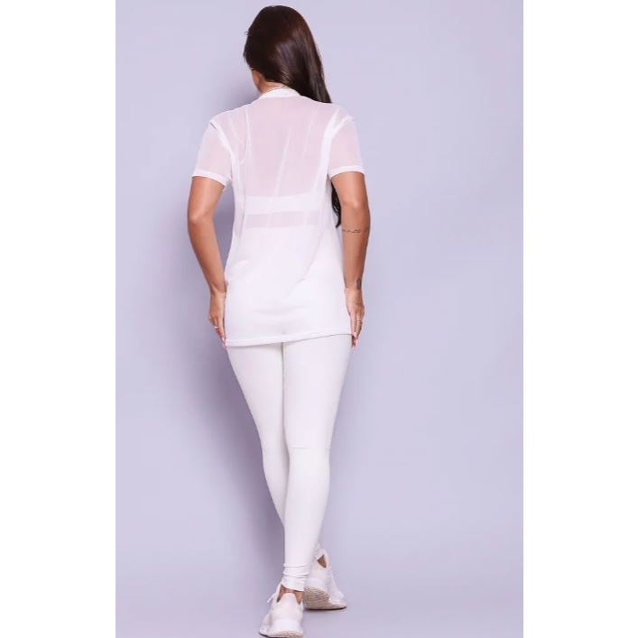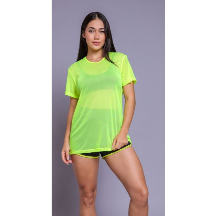 Blusa Feminina em Tule Transparente – Estilo Camisão Fitness (Veste 36 ao 42)