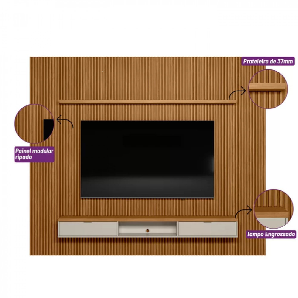 Painel Modular Ripado 3m com Nicho e Prateleira Linea Brasil