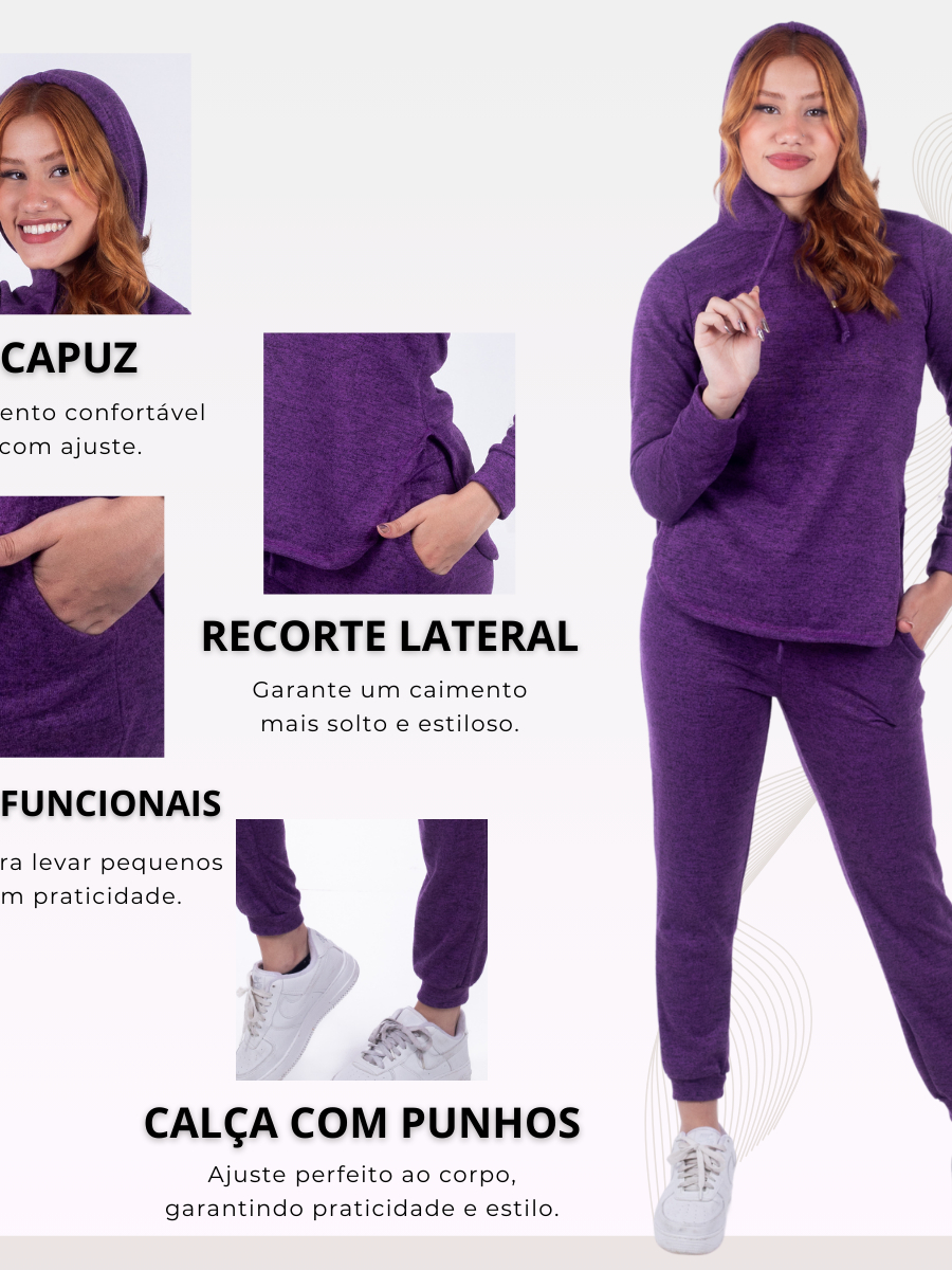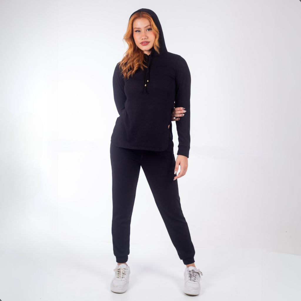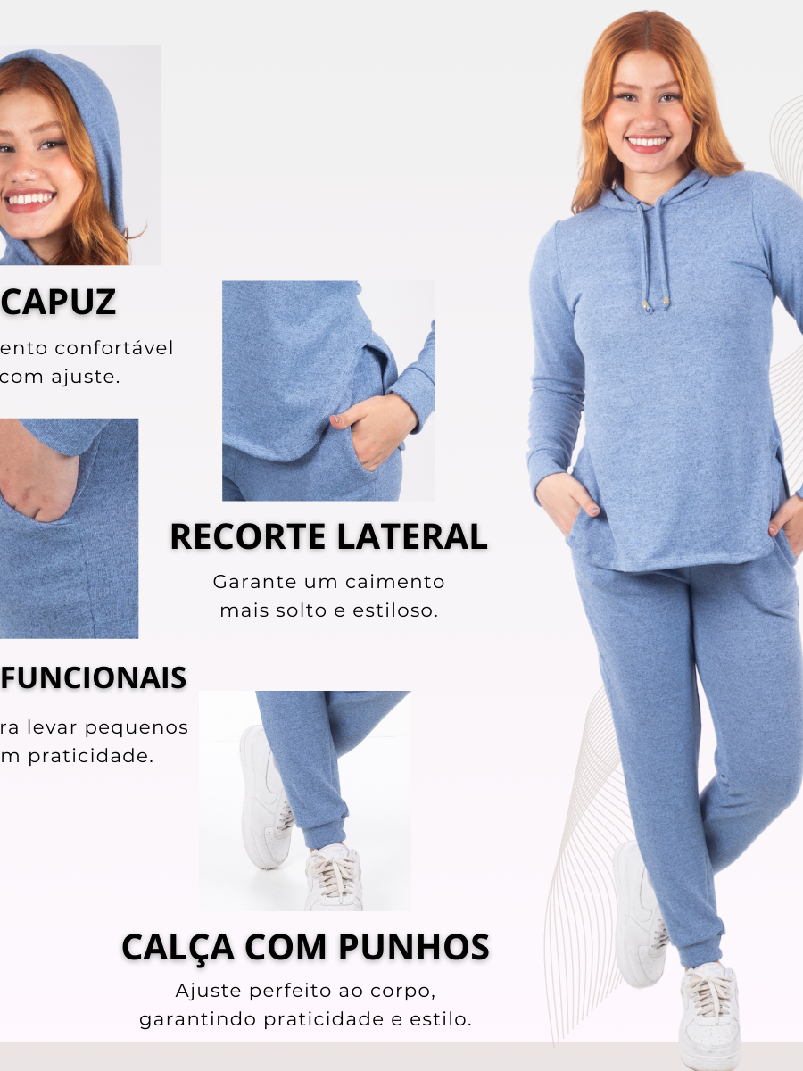 Conjunto Lanzinha 2 Peças Calça e Blusa Manga Longa Feminina lanzinha canelado
