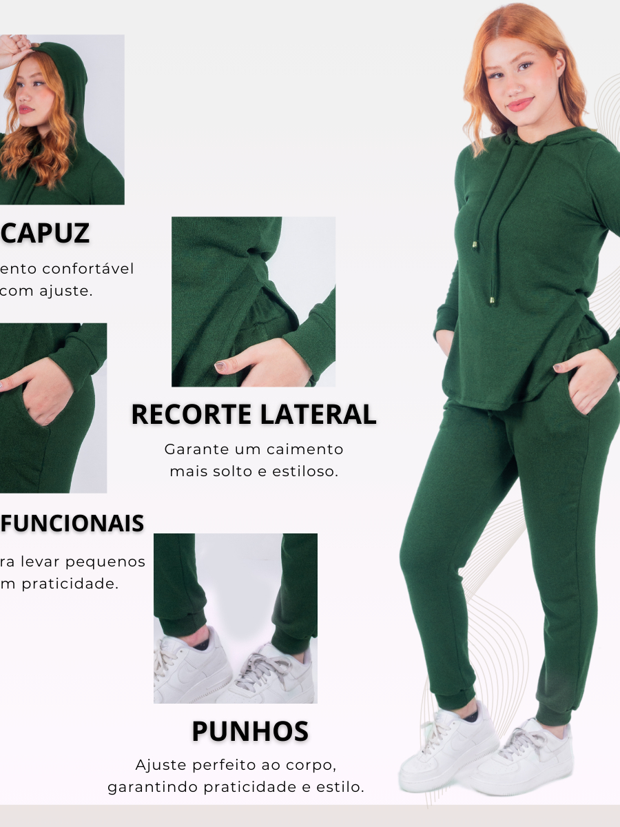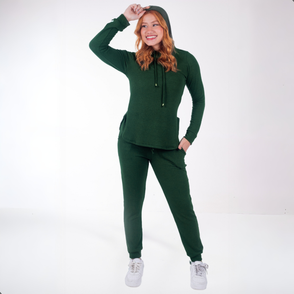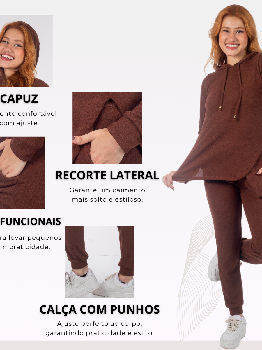 Conjunto Lanzinha 2 Peças Calça e Blusa Manga Longa Feminina lanzinha canelado
