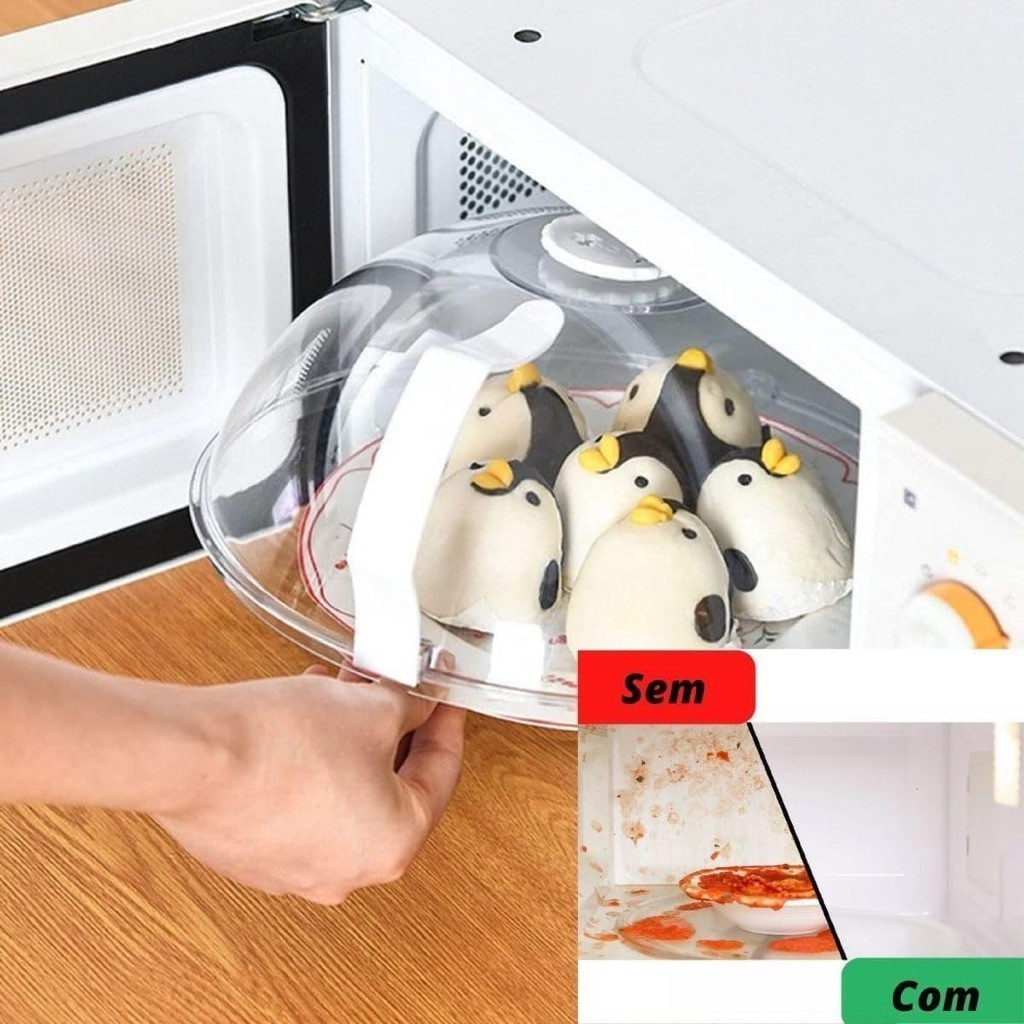 Tampa Microondas Anti-Respingo Com Alça e Transparente Anti Sujeira Com Válvula Livre de BPA Premium