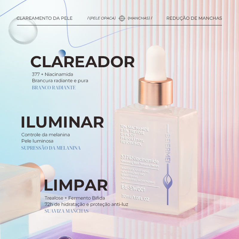 BEIERMEI Sérum Clareador e Anti-Manchas com 377 & Niacinamida 30ml / 1.0FL.OZ Clareamento intenso Hidratação e clareamen