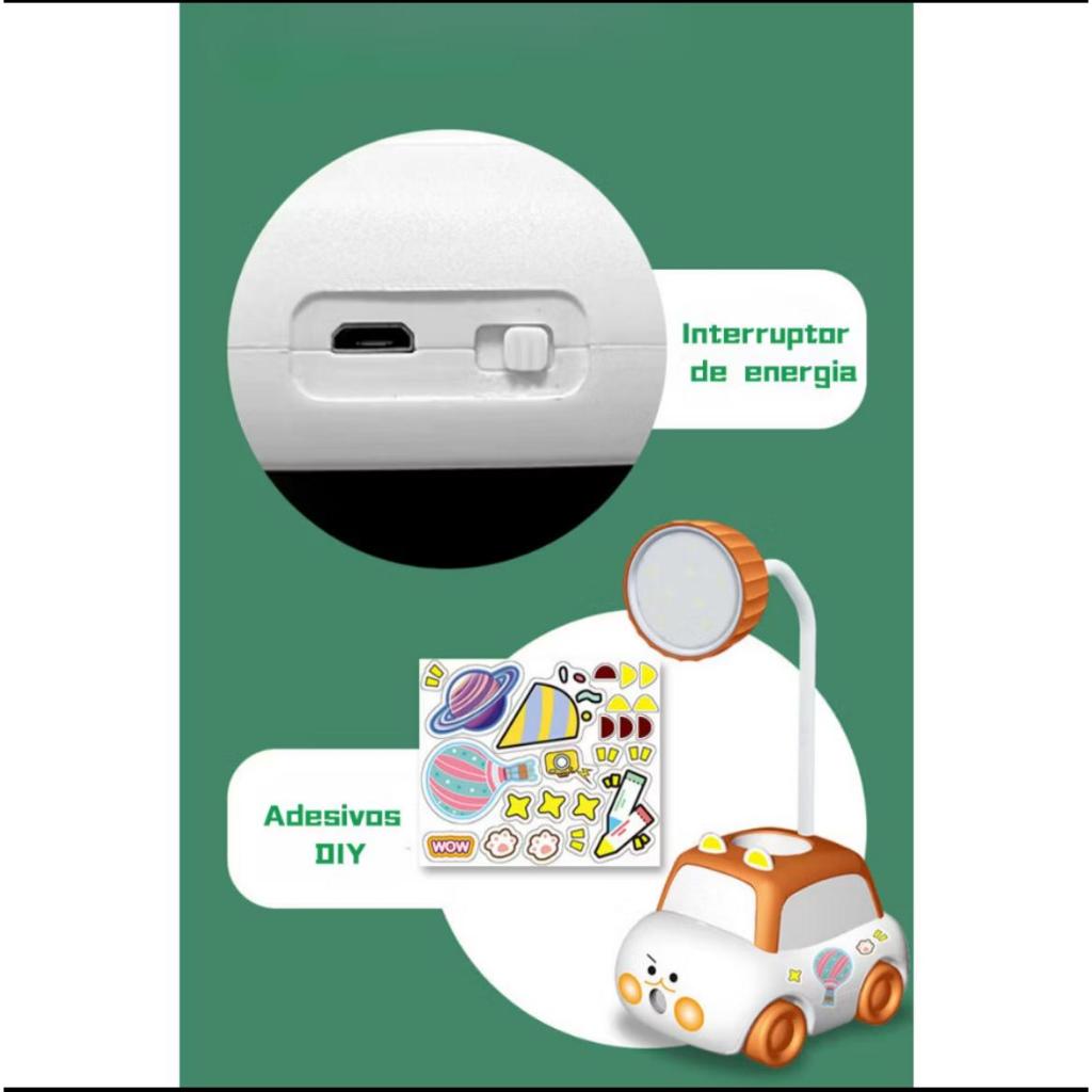 Abajur Luminária De Mesa Carro Multifuncional Estojo Apontador de lápis E Suporte De Celular LED Recarregável