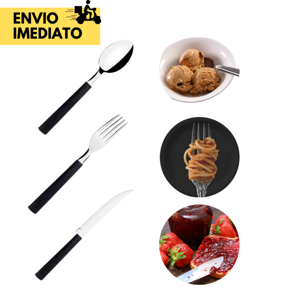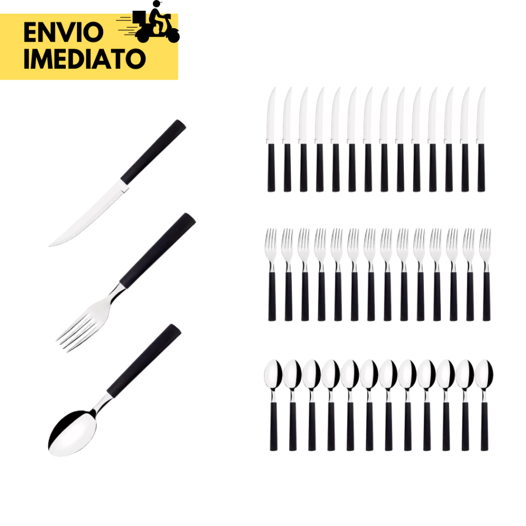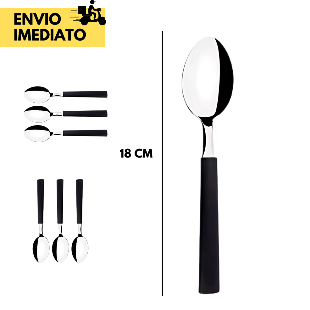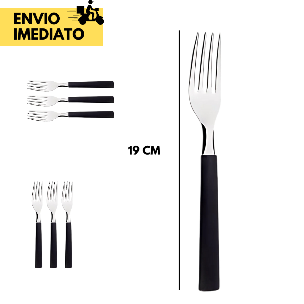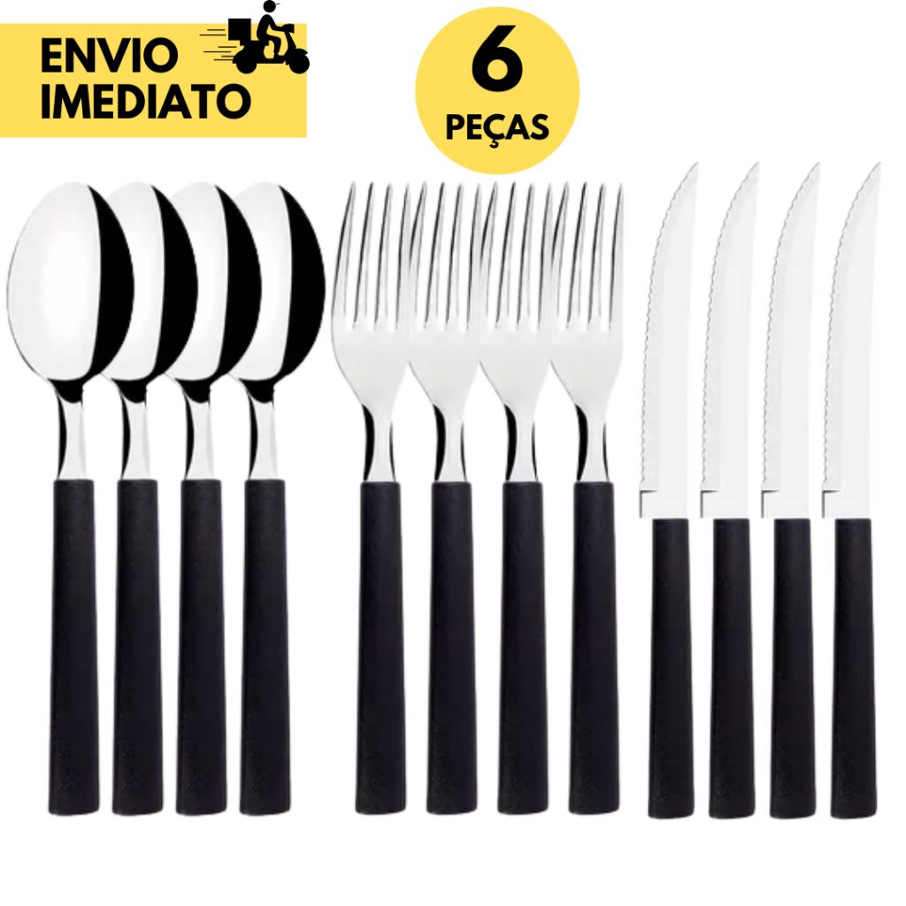 15 Talheres de Inox Cabo Preto 5 Facas 5 Colheres 5 Garfos uso Residencial Restaurante Hotel Padaria
