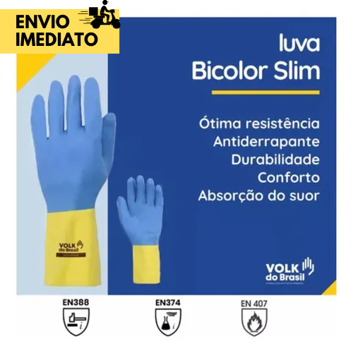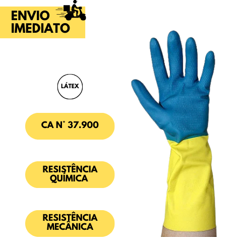 12 ou 6 Pares Luva Neoprene Bicolor de Segurança Química CA Alta Resistência EPI Profissional e Doméstico